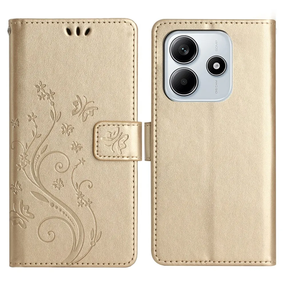 Virágok könyv tok Xiaomi Redmi Note 14 5G-hez - arany színű