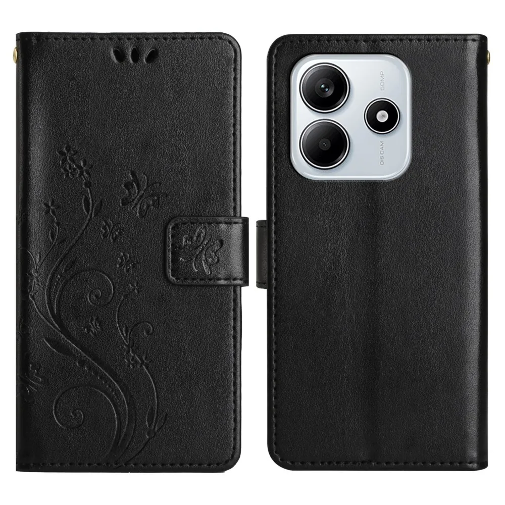 Virágok könyv tok Xiaomi Redmi Note 14 5G-hez - fekete