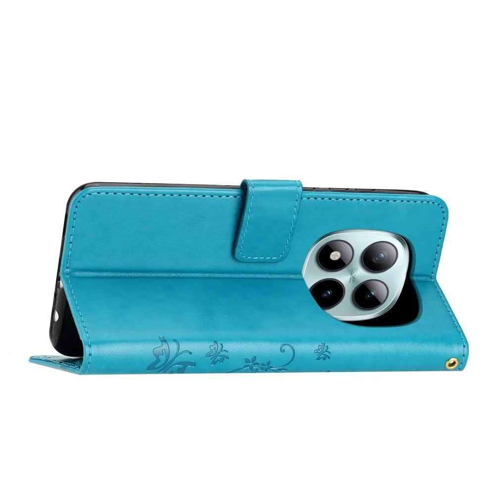 Kék pénztárca tok Virágok a Xiaomi Redmi Note 15 Pro+ 5G/Xiaomi Poco M8 Pro 5G számára