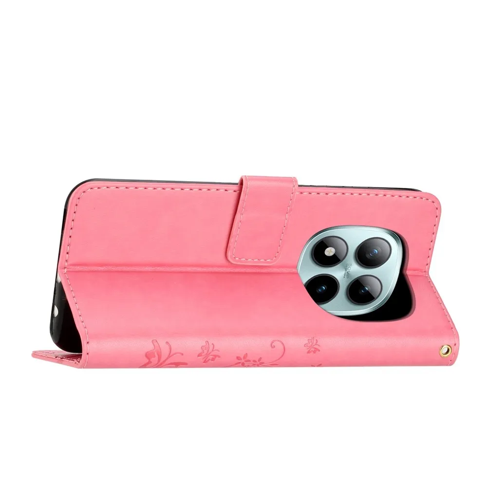 Rózsaszín pénztárca tok Virágok a Xiaomi Redmi Note 15 Pro+ 5G/Xiaomi Poco M8 Pro 5G számára