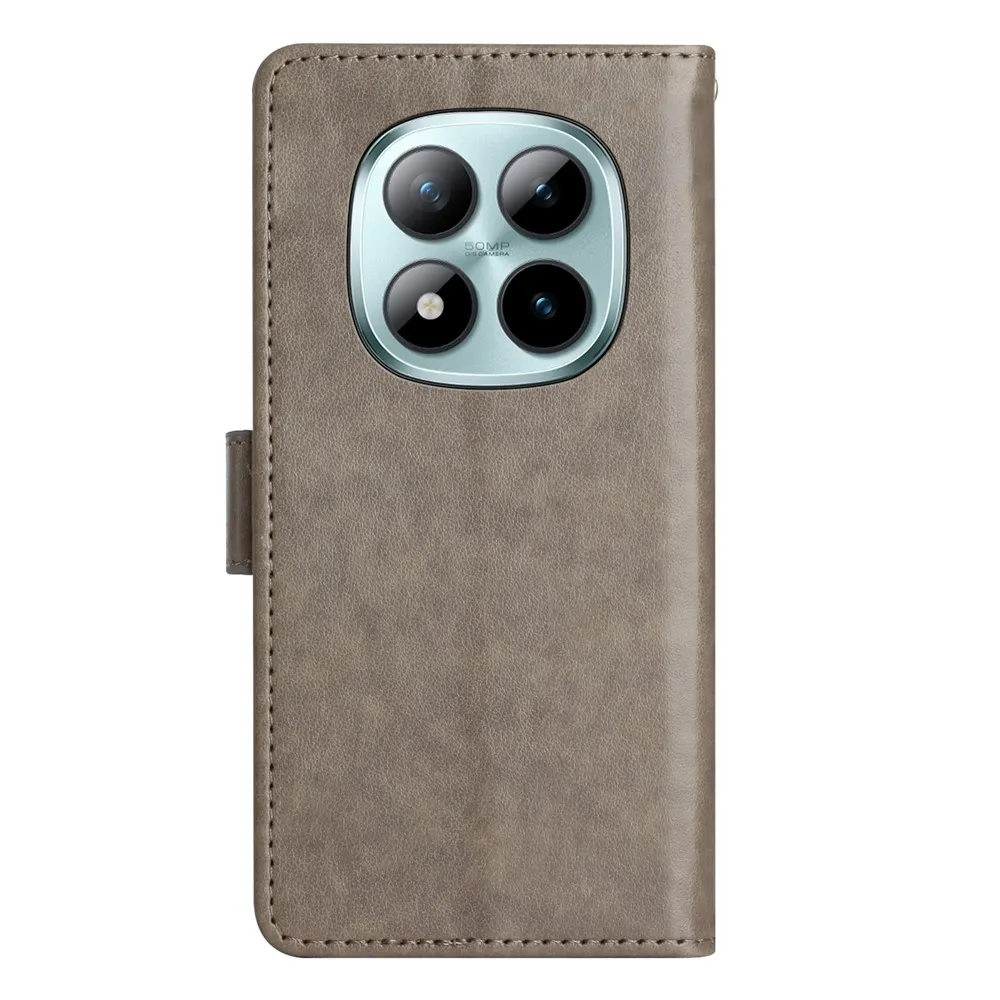 Szürke pénztárca tok Virágok Xiaomi Redmi Note 15 Pro+ 5G/Xiaomi Poco M8 Pro 5G számára