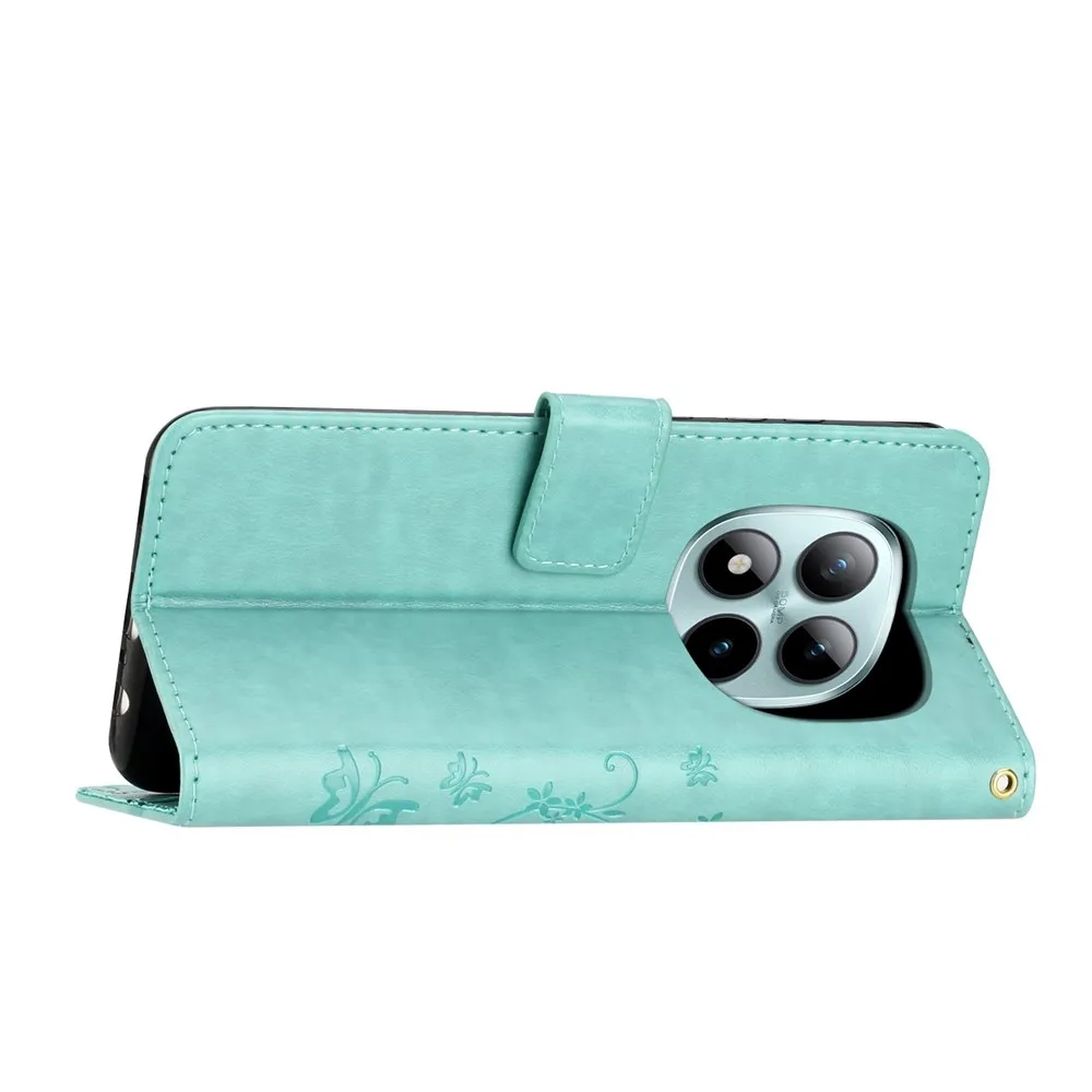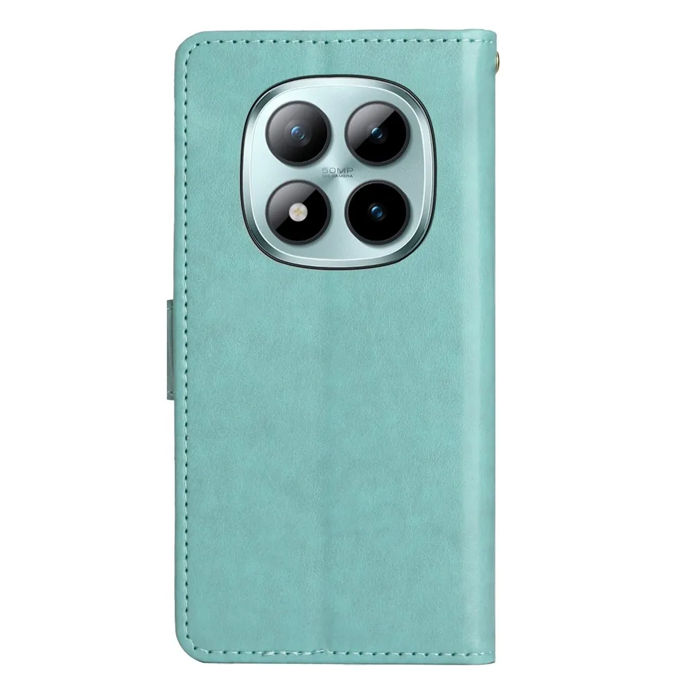 Kék-zöld pénztárca tok Virágok a Xiaomi Redmi Note 15 Pro+ 5G/Xiaomi Poco M8 Pro 5G-hez