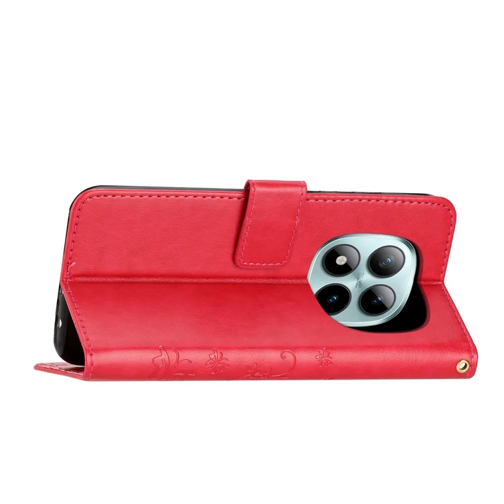 Piros pénztárca tok Virágok Xiaomi Redmi Note 15 Pro+ 5G/Xiaomi Poco M8 Pro 5G számára