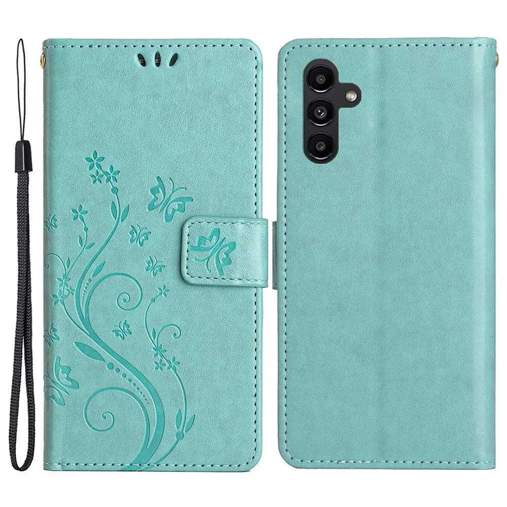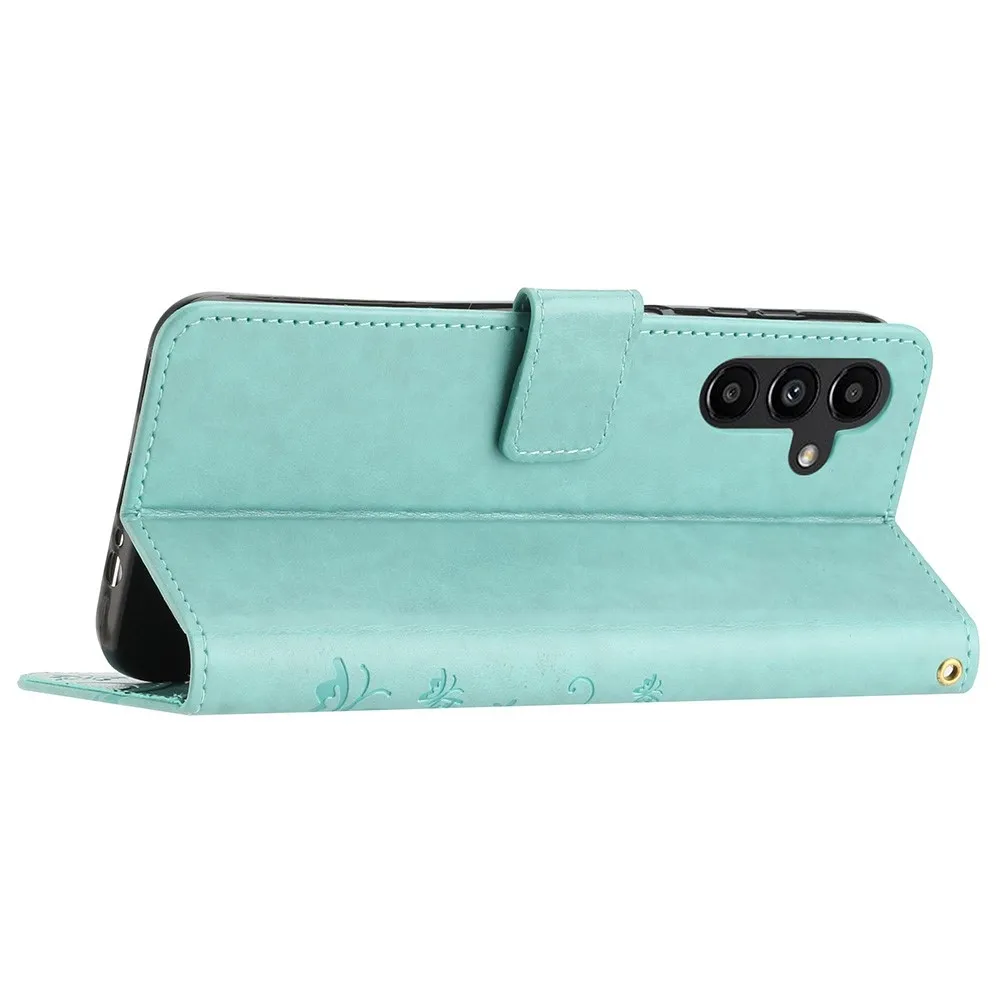 Kék-zöld pénztárca tok Virágok Samsung Galaxy S23 FE számára
