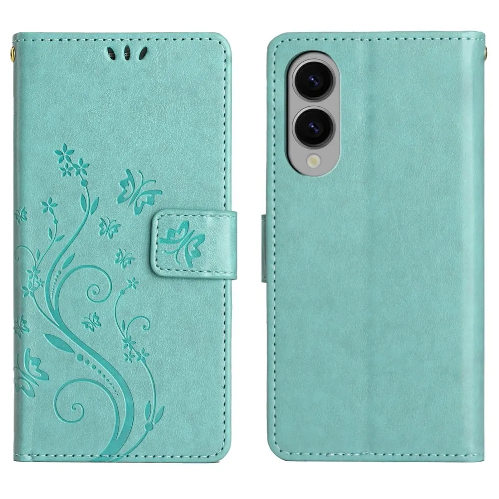 Kék-zöld pénztárca tok Virágok Samsung Galaxy S25 Edge-hez