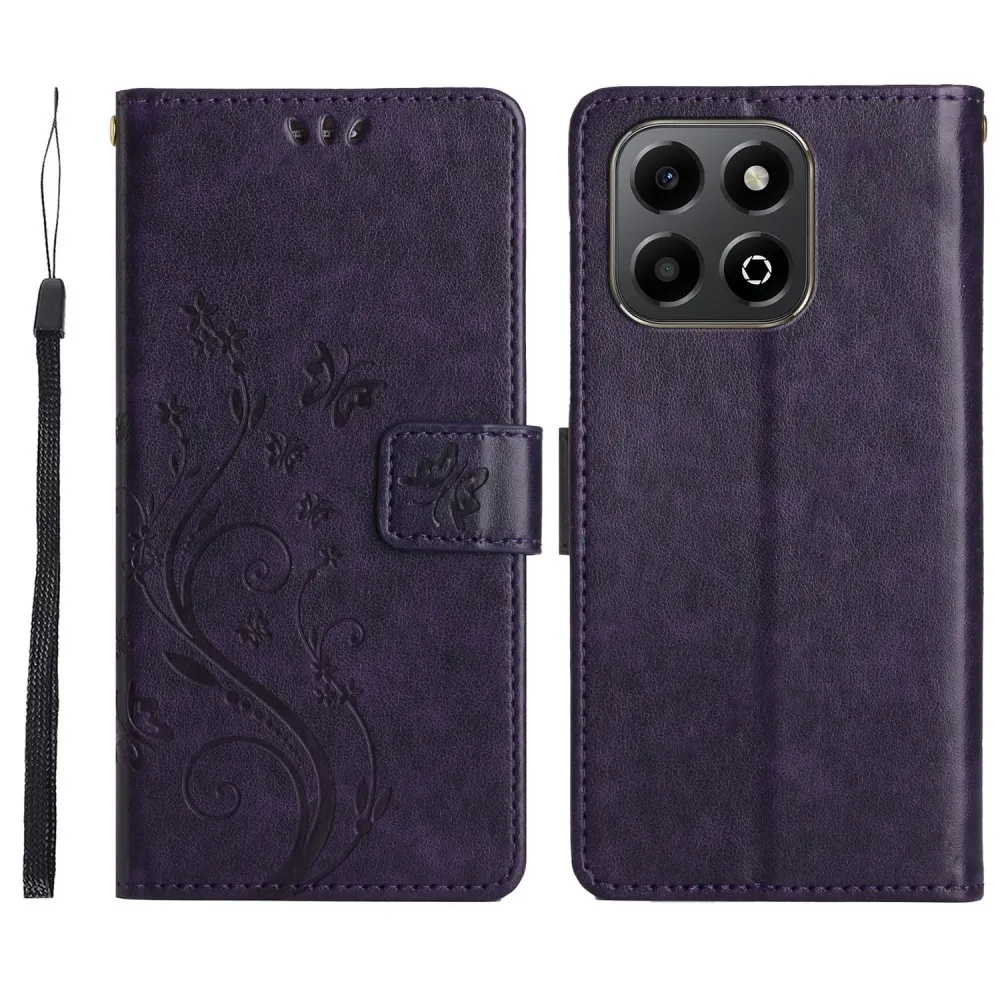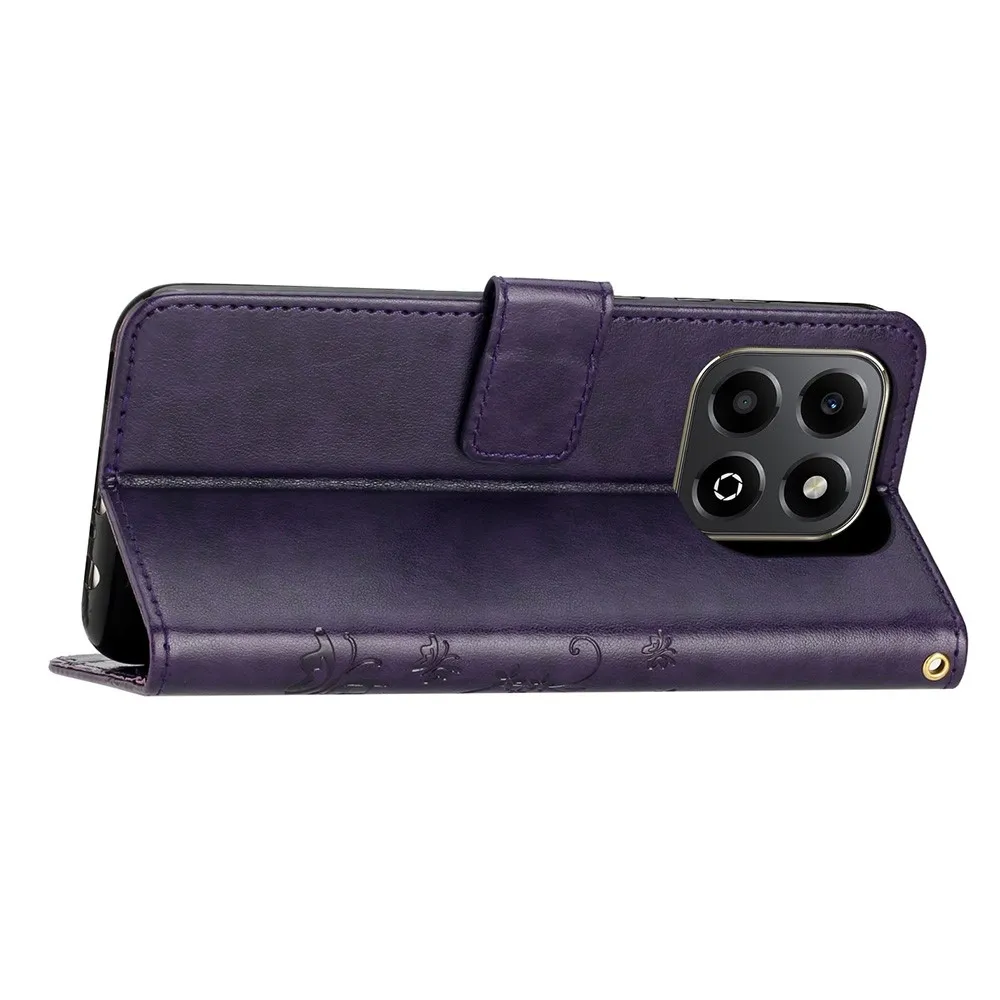 Virágok könyvtáska a Honor 200 Smart 5G készülékhez - sötét lila