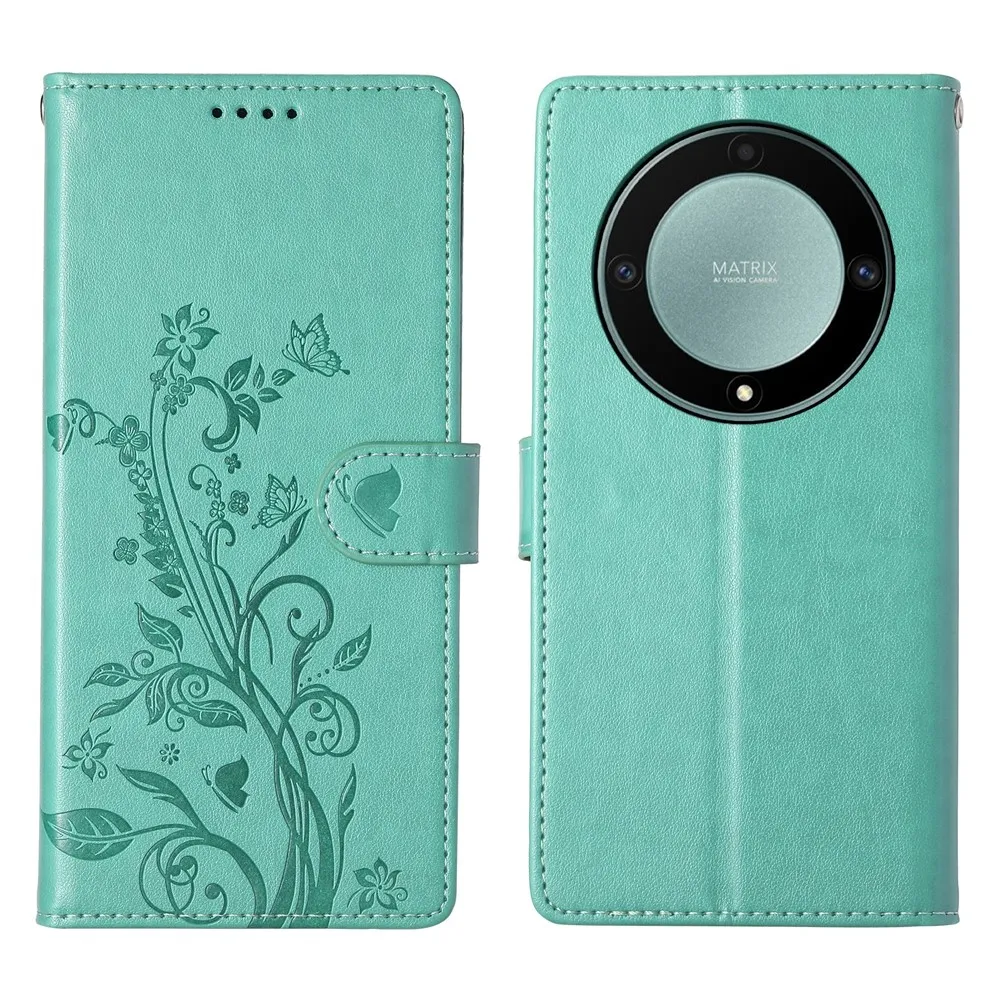 Virágok könyvtáska a Honor Magic 8 Lite 5G-hez - teal színű