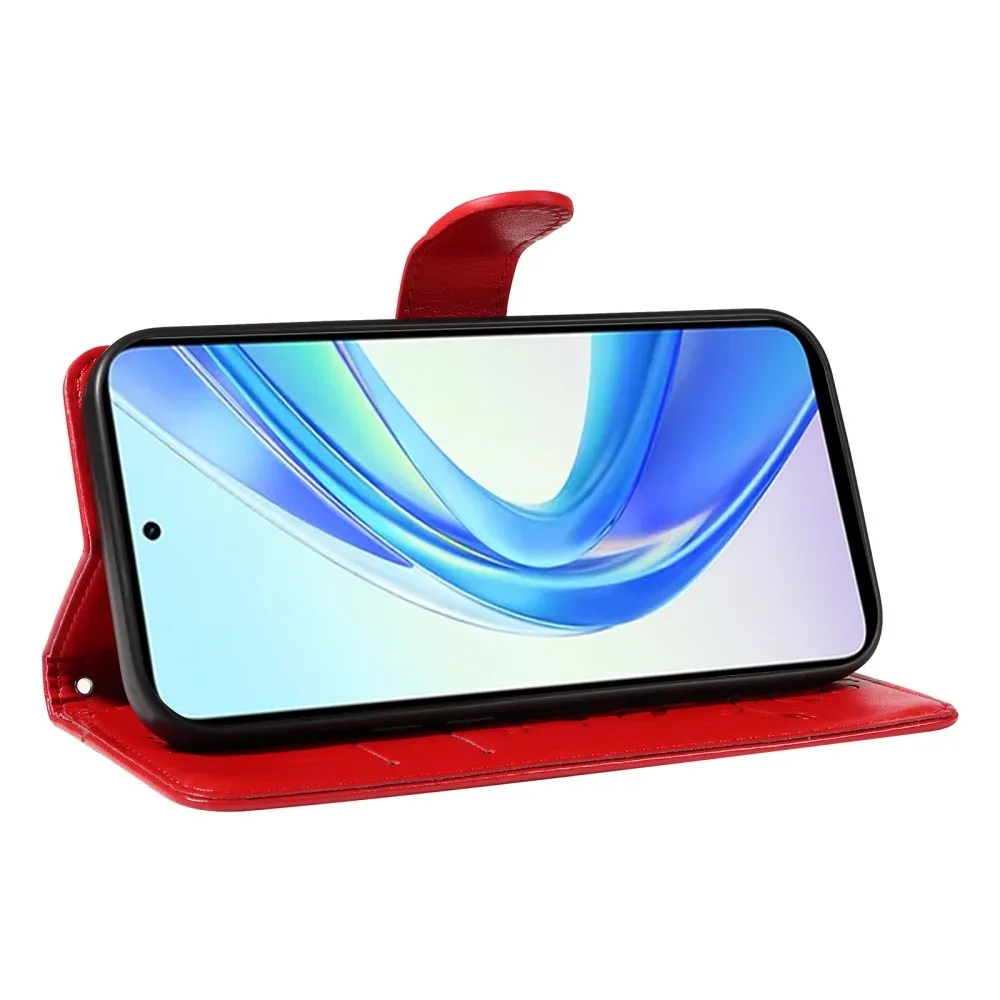 Piros pénztárca tok Virágok a Honor X7b/Honor 90 Smart számára