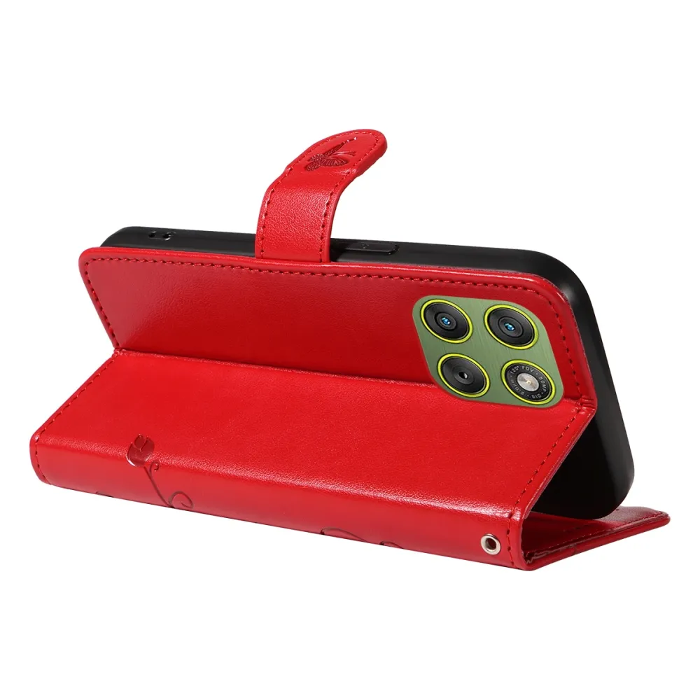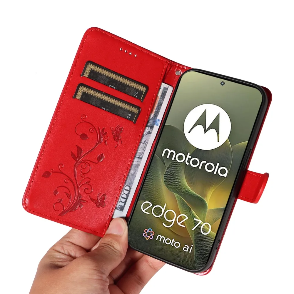 Virágok könyvtáska a Motorola Edge 70 5G-hez - piros