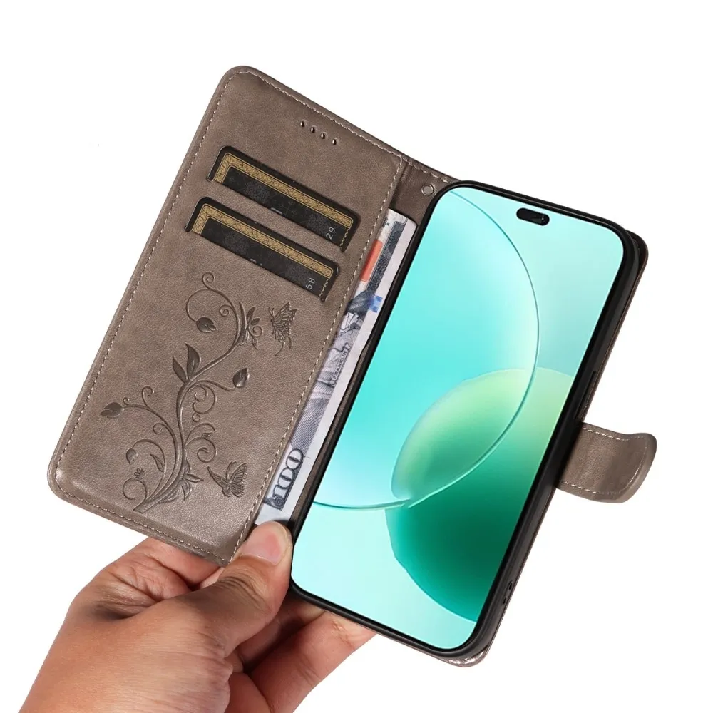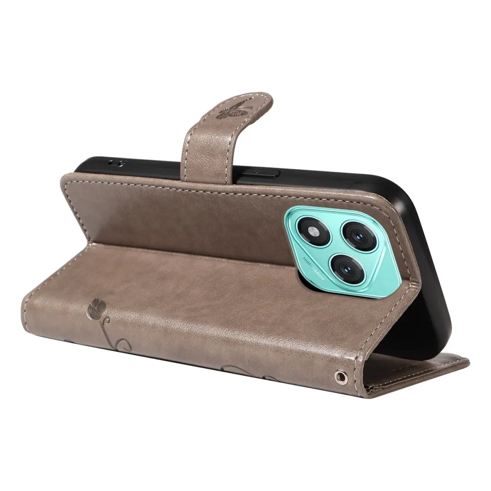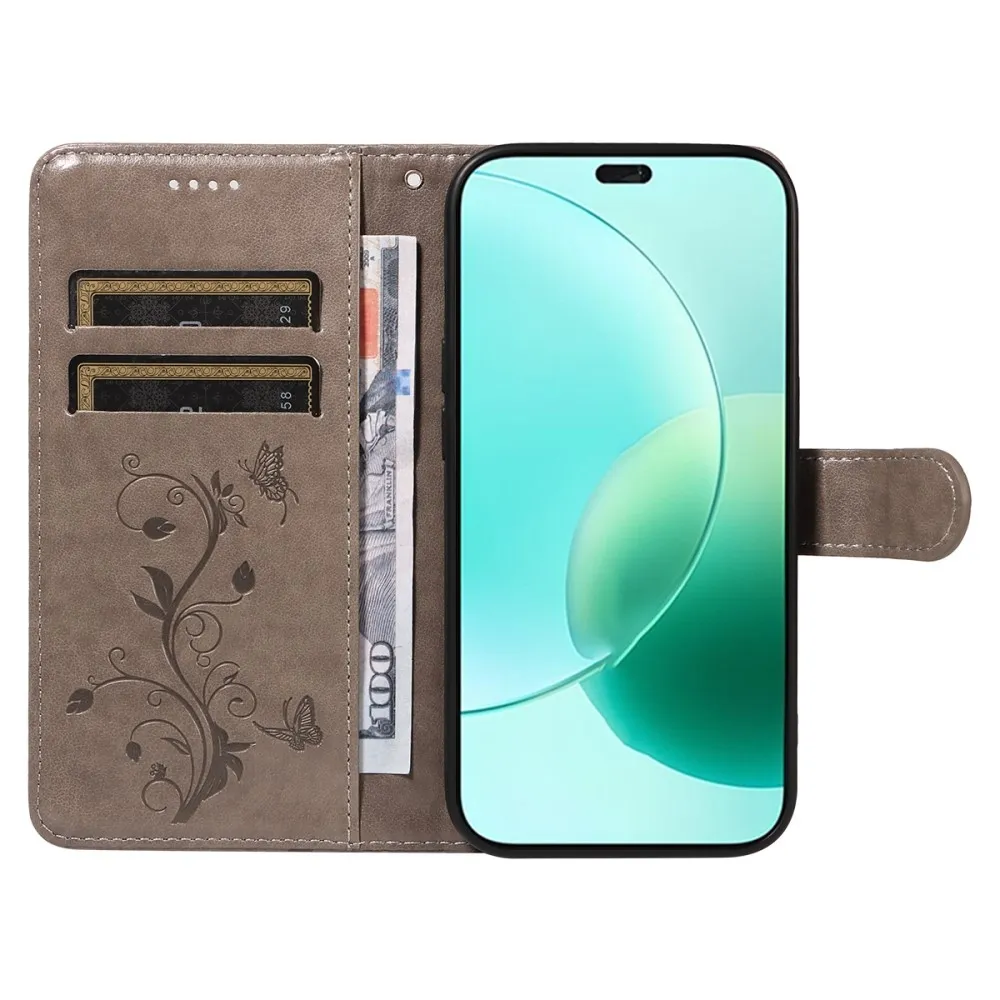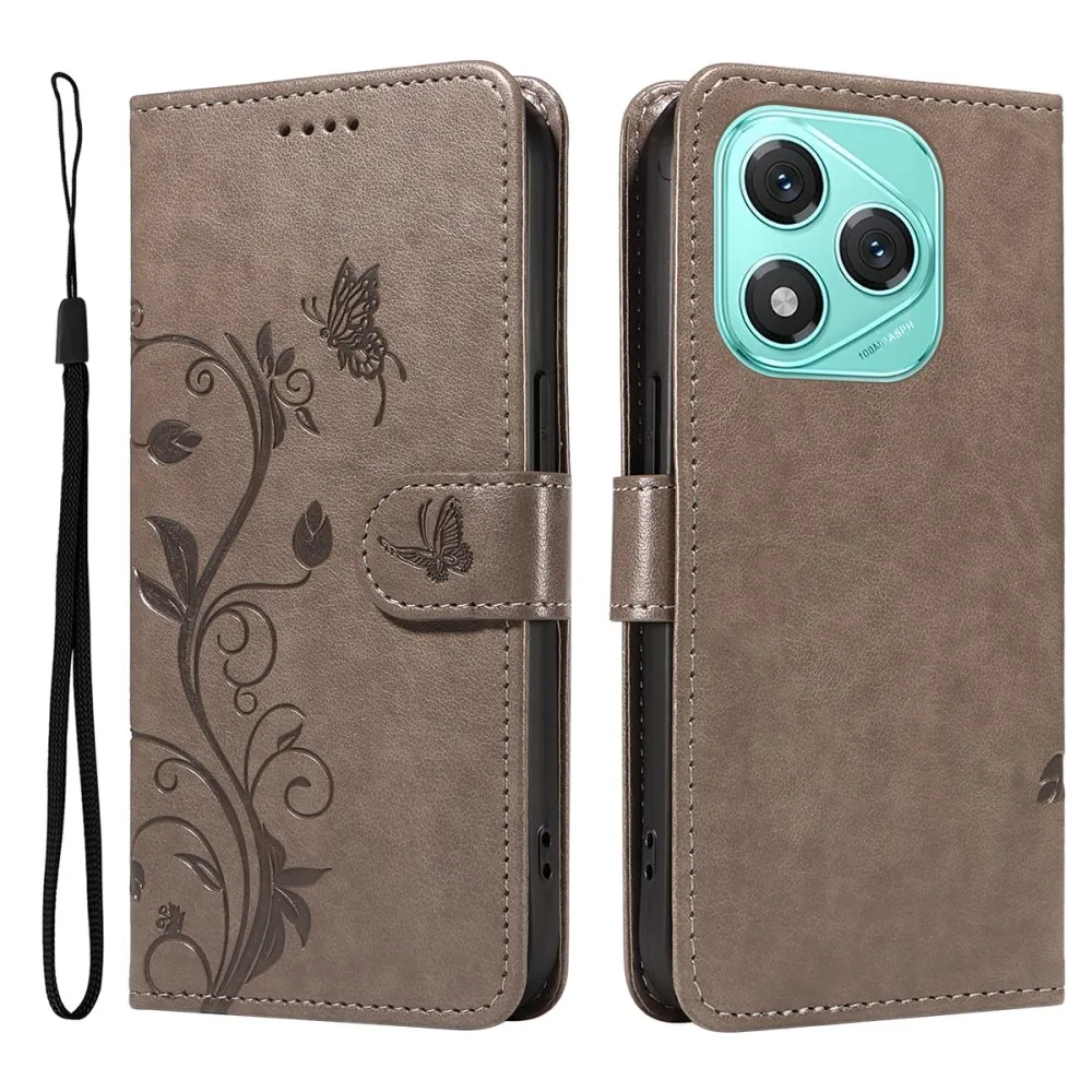 Szürke pénztárca tok Virágok a Honor 400 Lite számára