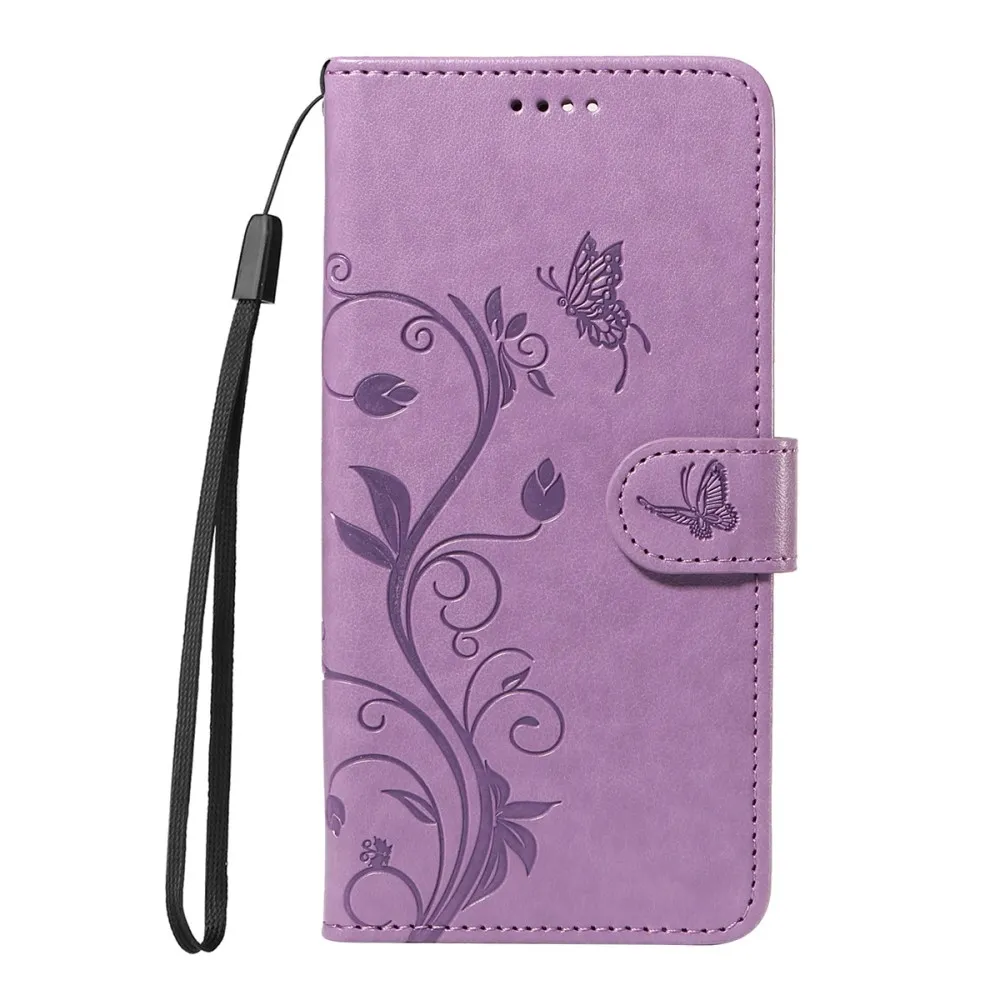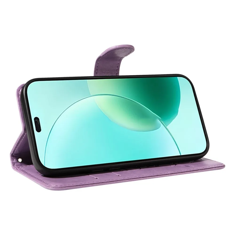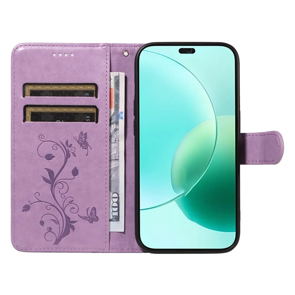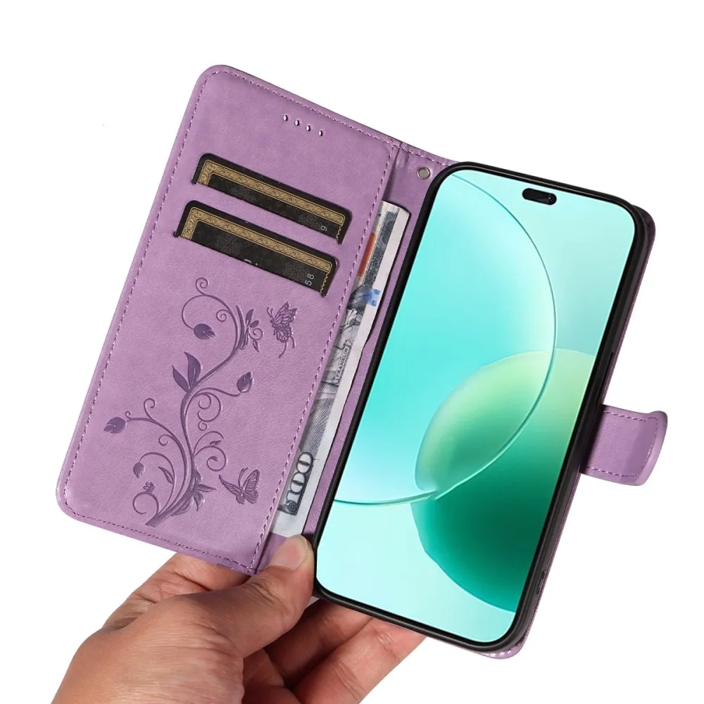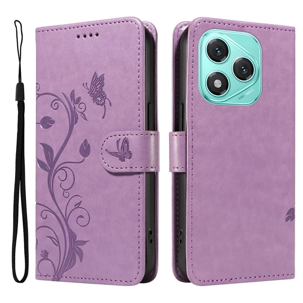 Világos lila pénztárca tok Virágok a Honor 400 Lite számára