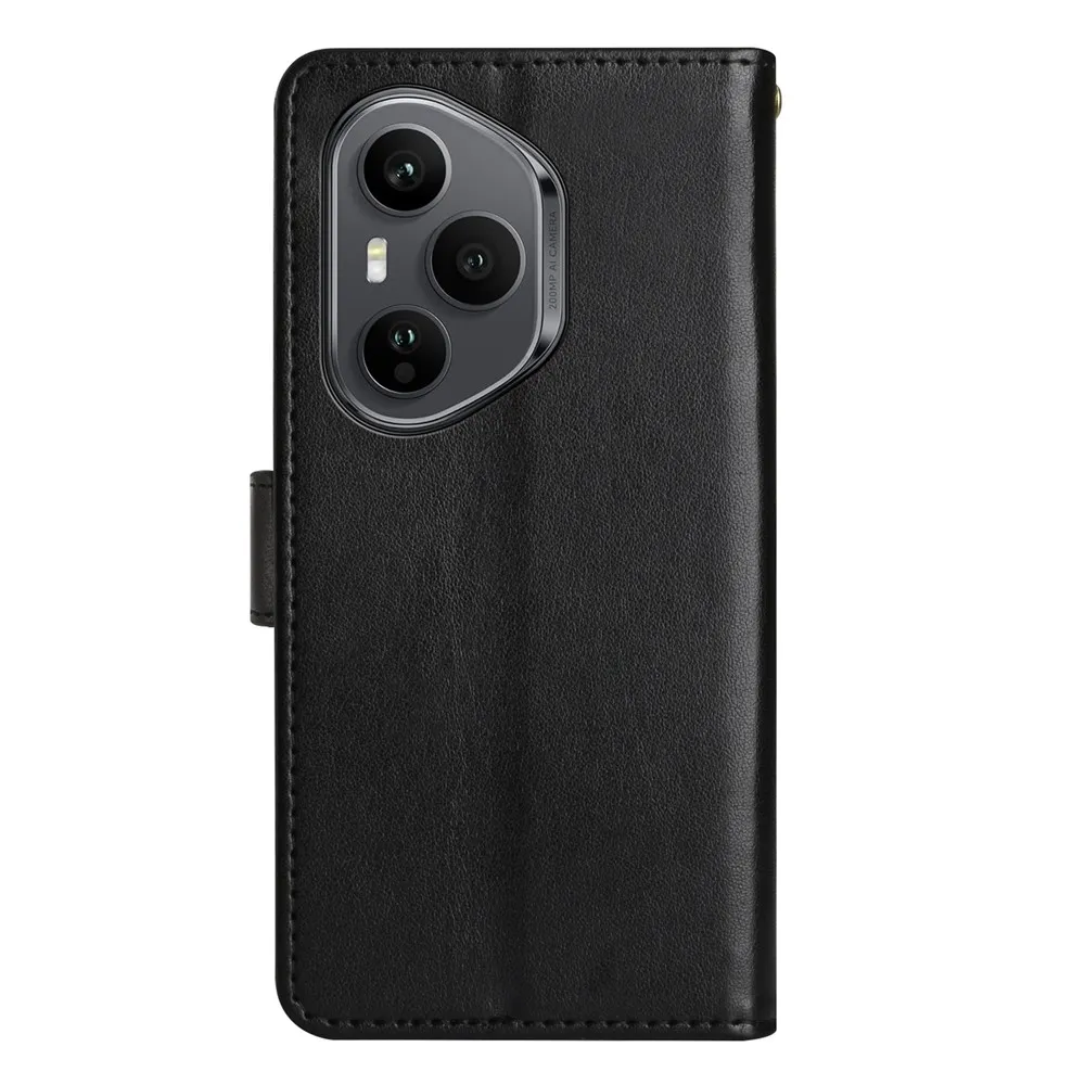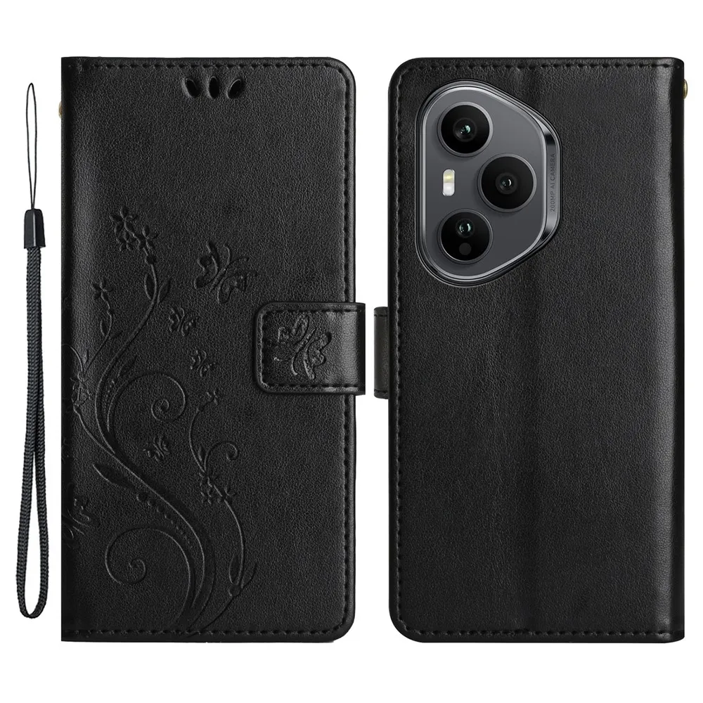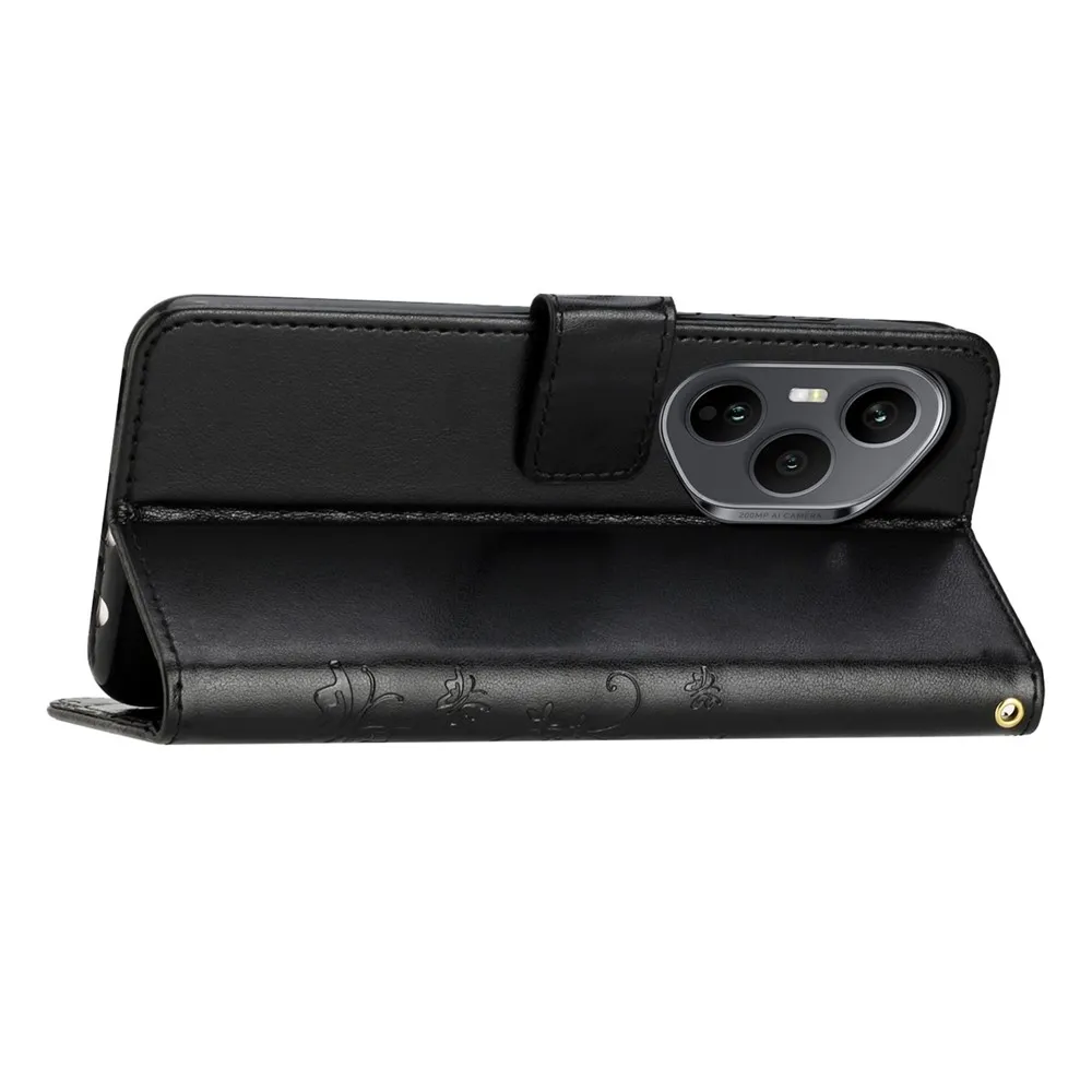 Fekete pénztárca tok Virágok a Honor 400 Pro számára