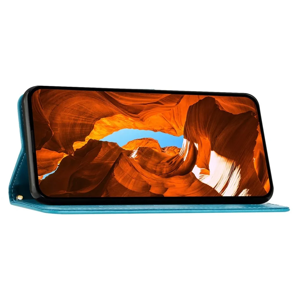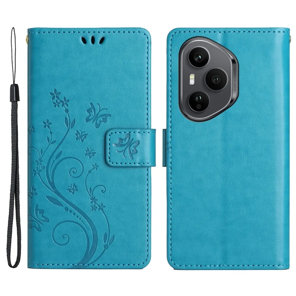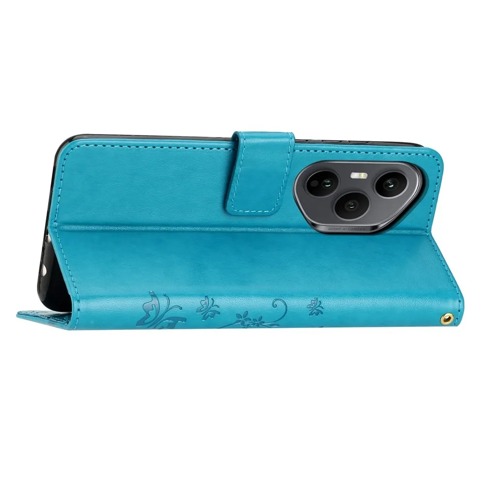 Kék pénztárca tok Virágok a Honor 400 Pro számára