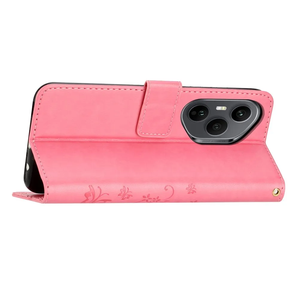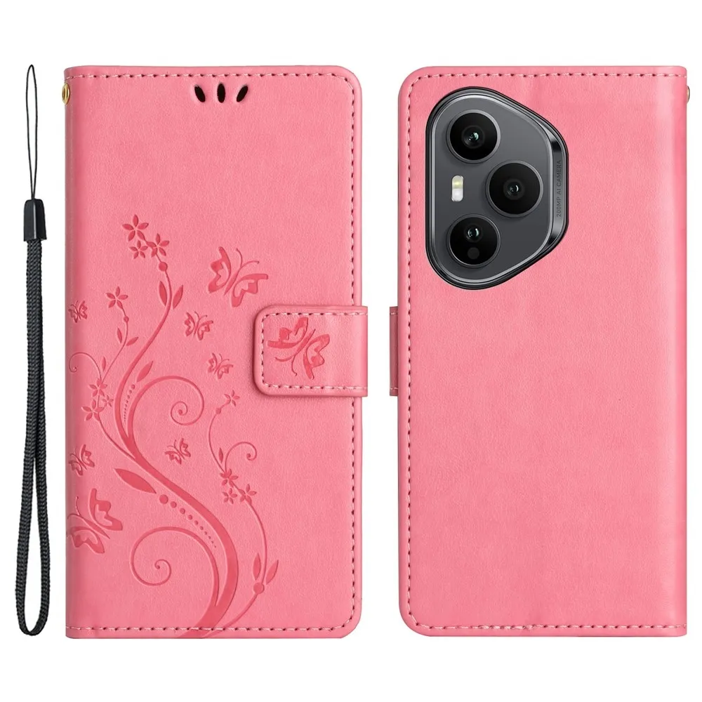 Rózsaszín pénztárca tok Virágok a Honor 400 Pro számára