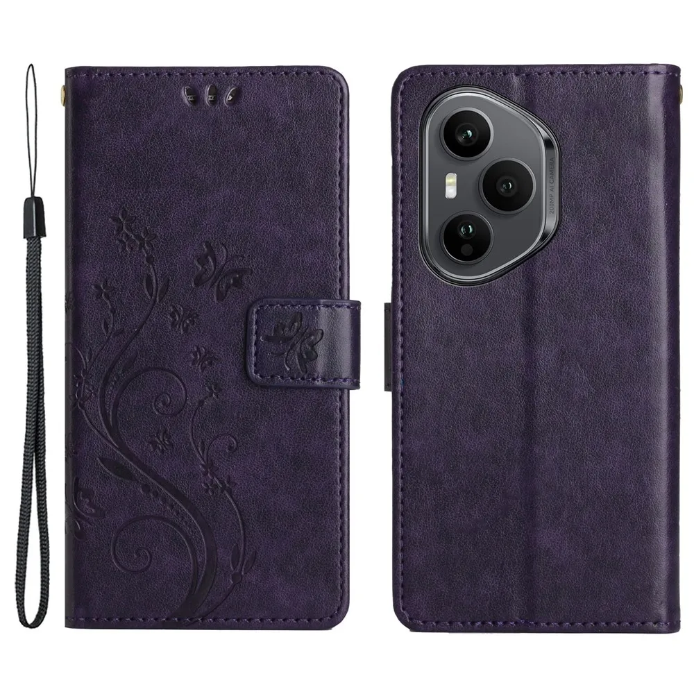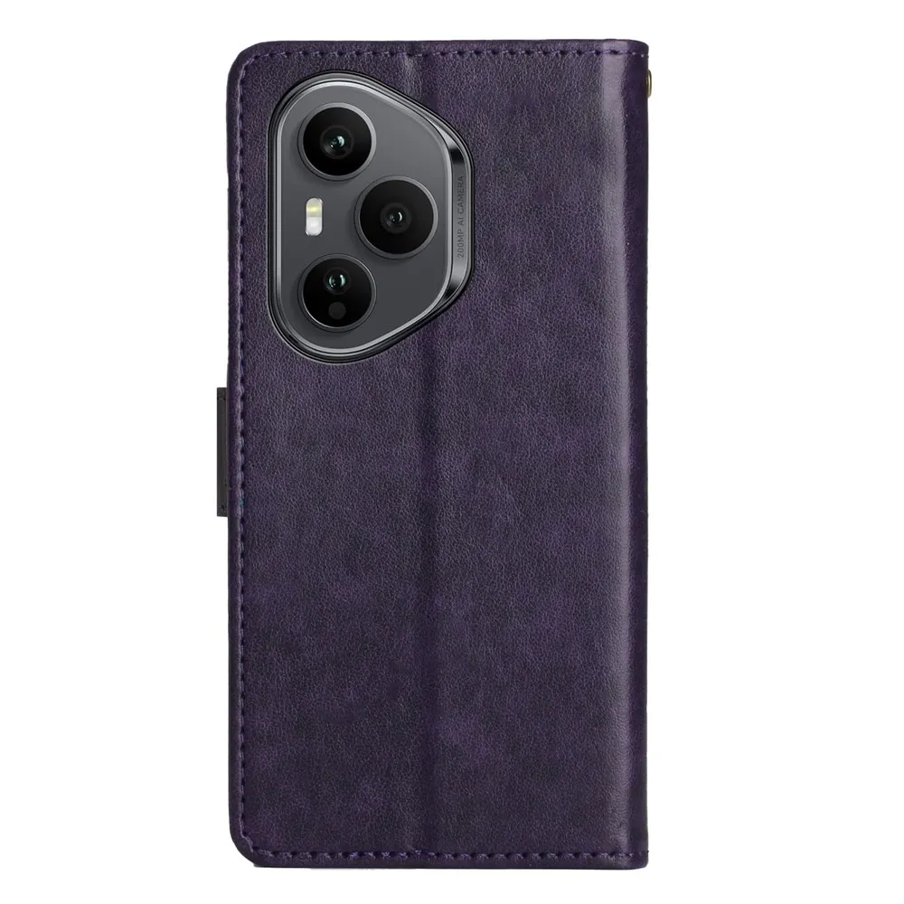 Sötét lila Virágok pénztárca tok a Honor 400 Pro-hoz