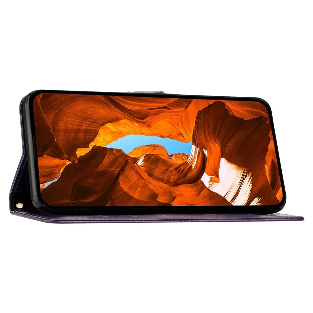 Virágok könyvtáska Honor 400 Pro-hoz - sötétlila
