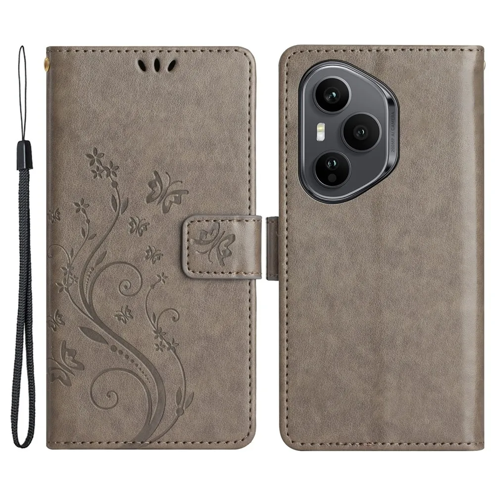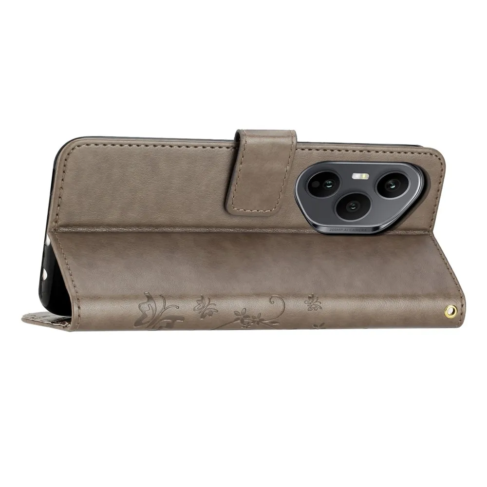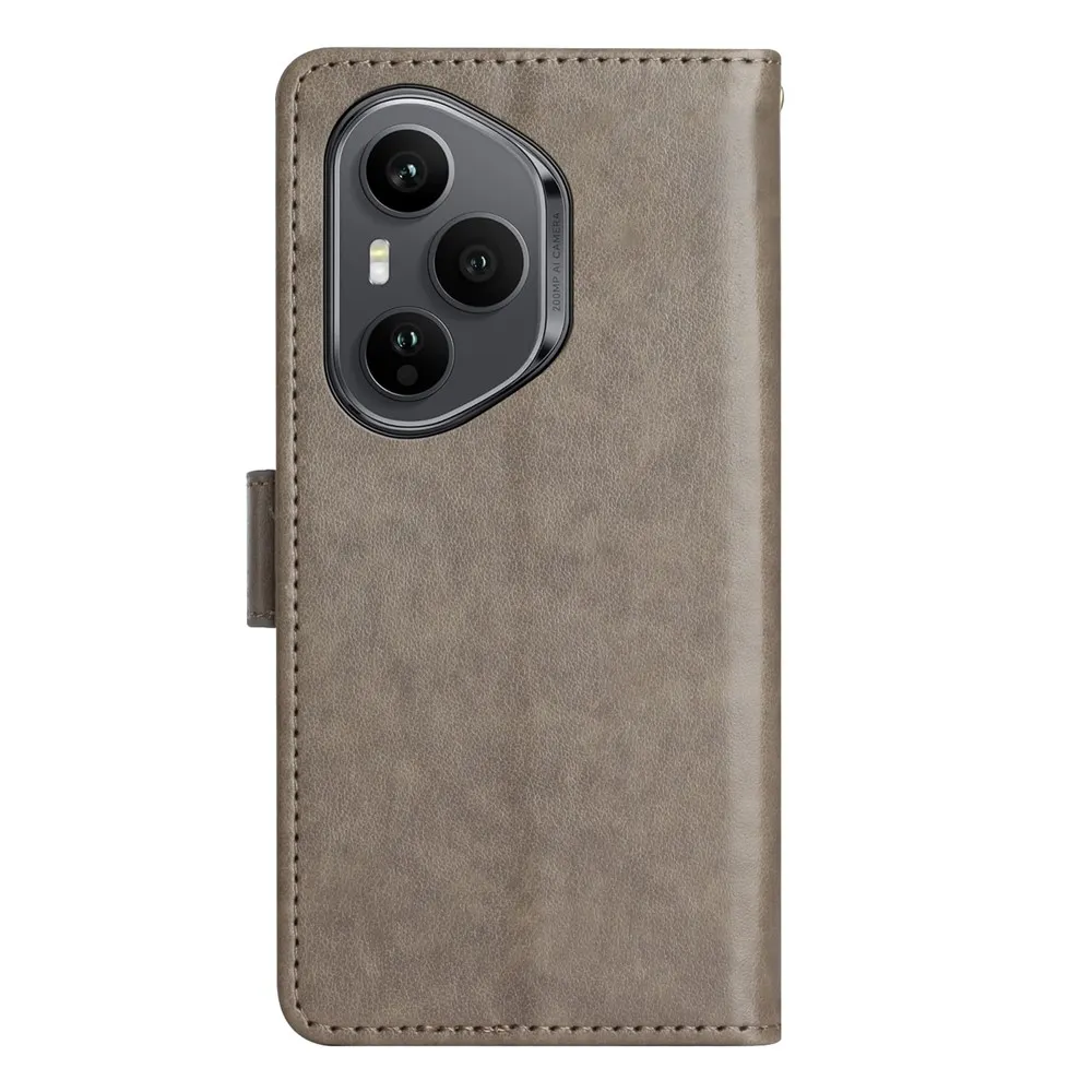 Szürke pénztárca tok Virágok a Honor 400 Pro számára