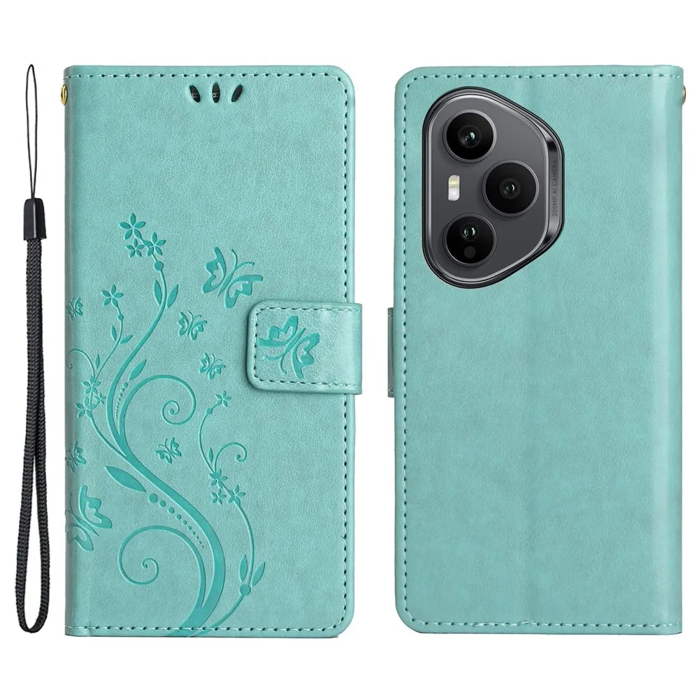 Kék-zöld pénztárca tok Virágok a Honor 400 Pro számára