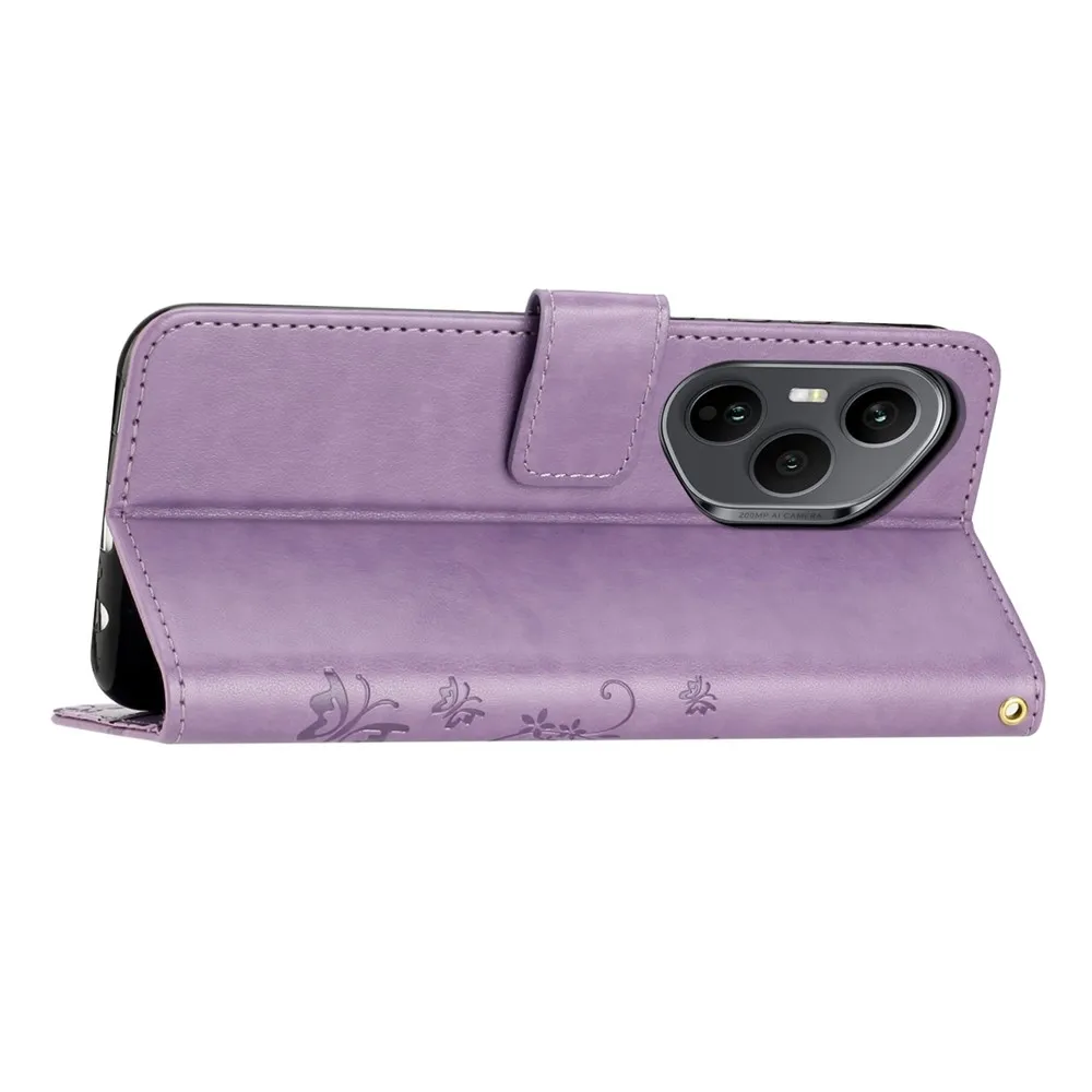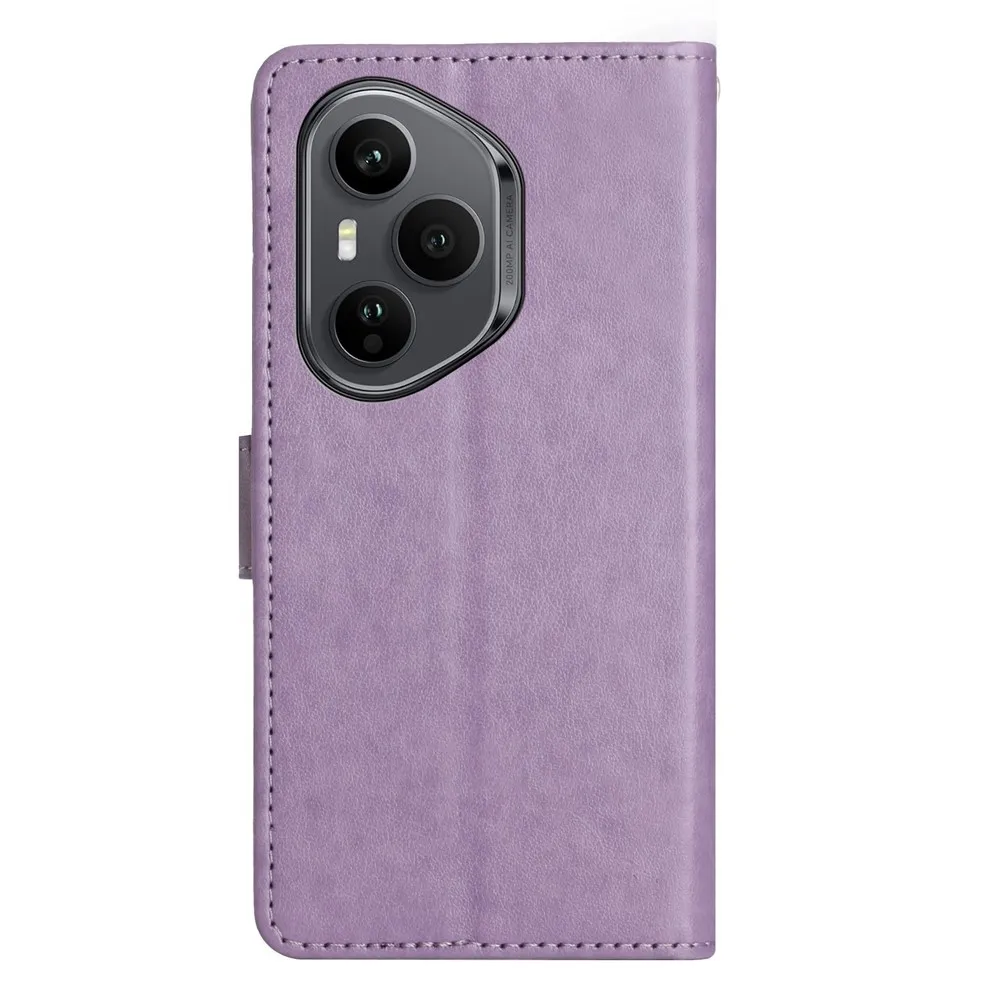 Világos lila pénztárca tok Virágok a Honor 400 Pro számára