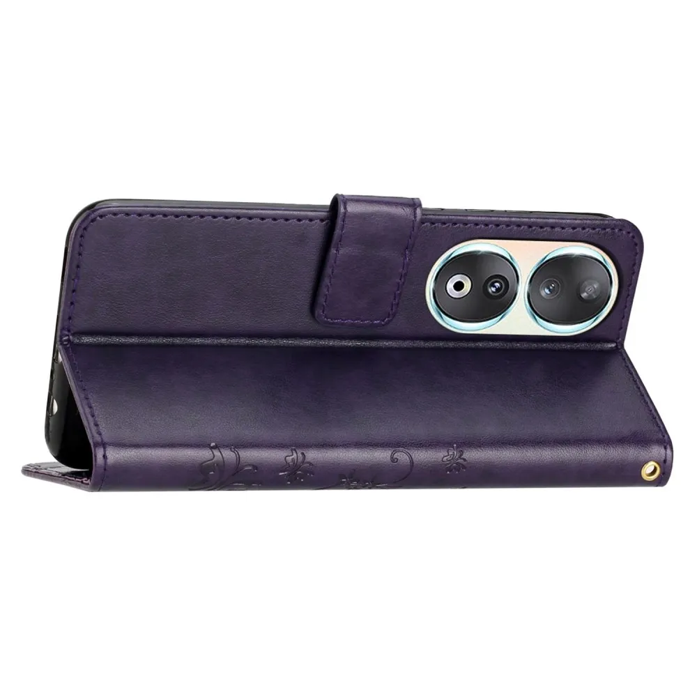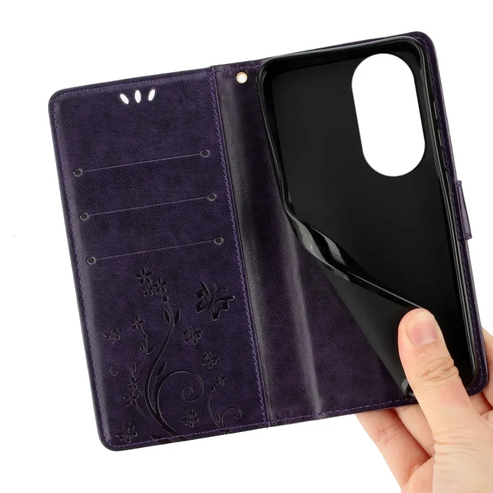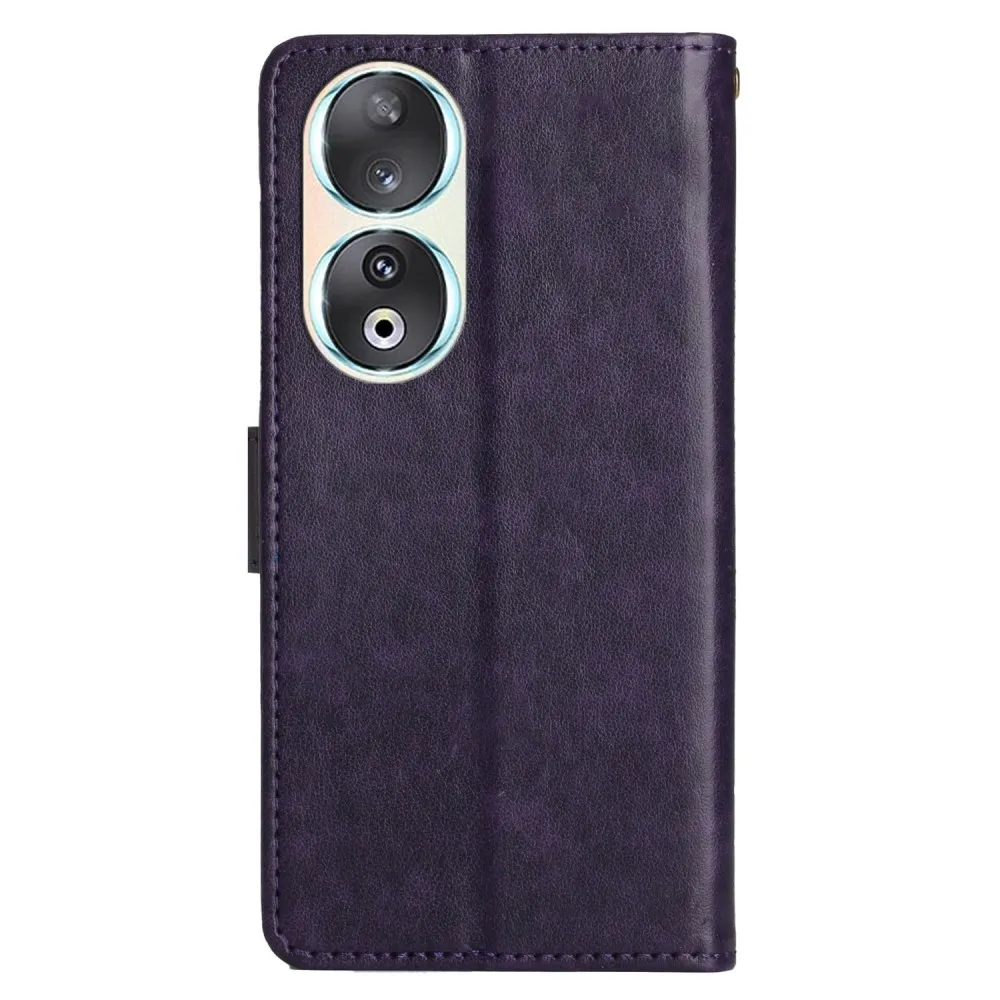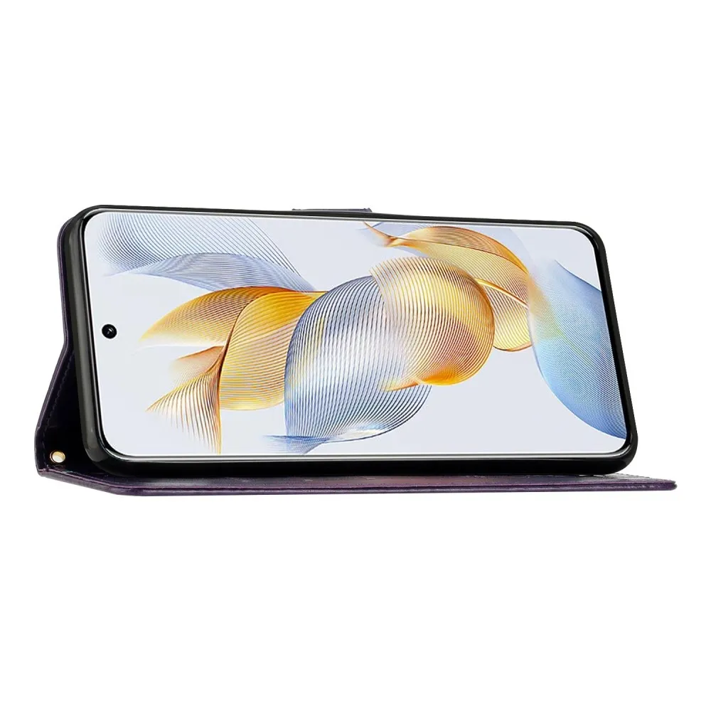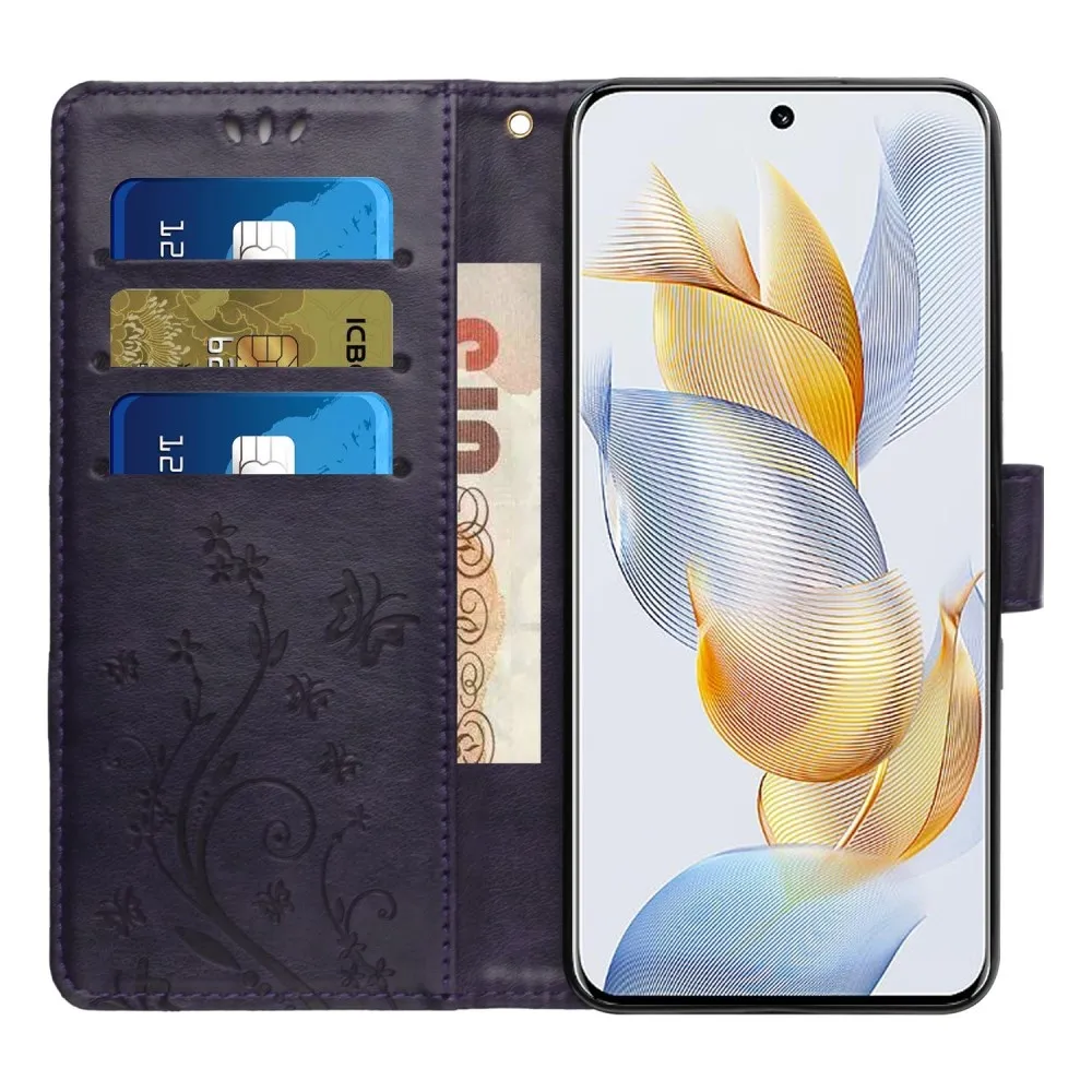 Sötét lila pénztárca tok Virágok a Honor 90 számára