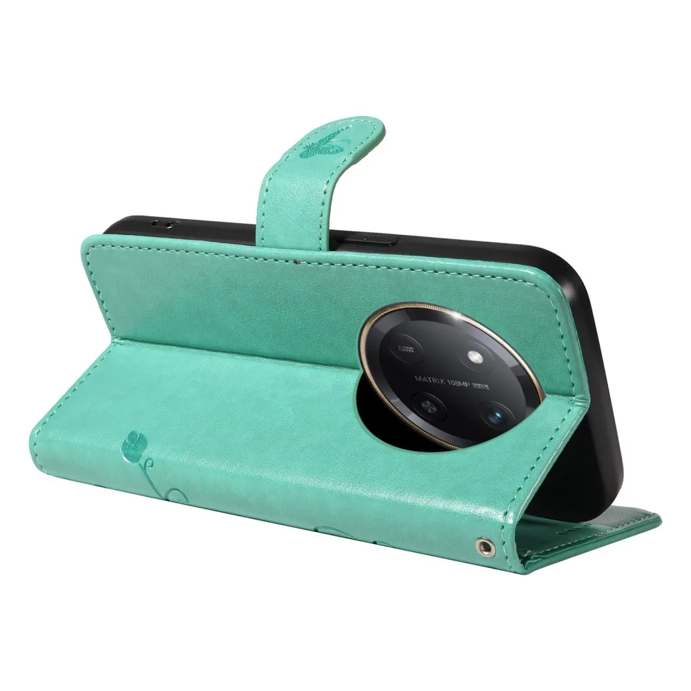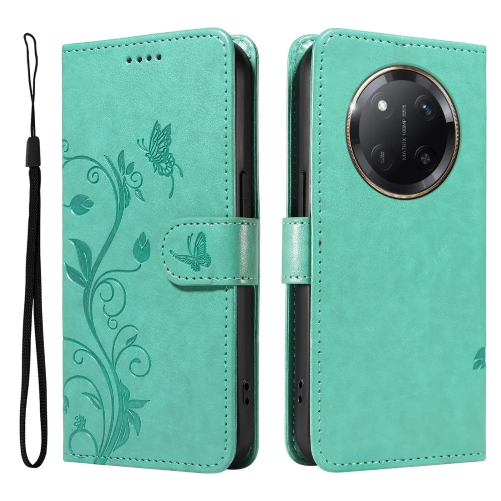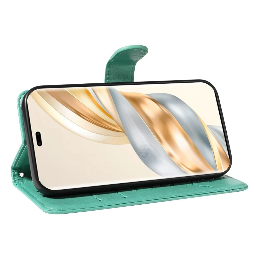 Zöld pénztárca tok Virágok a Honor Magic 7 Lite 5G számára