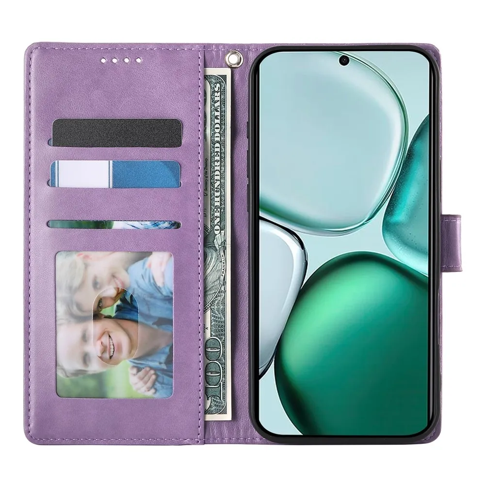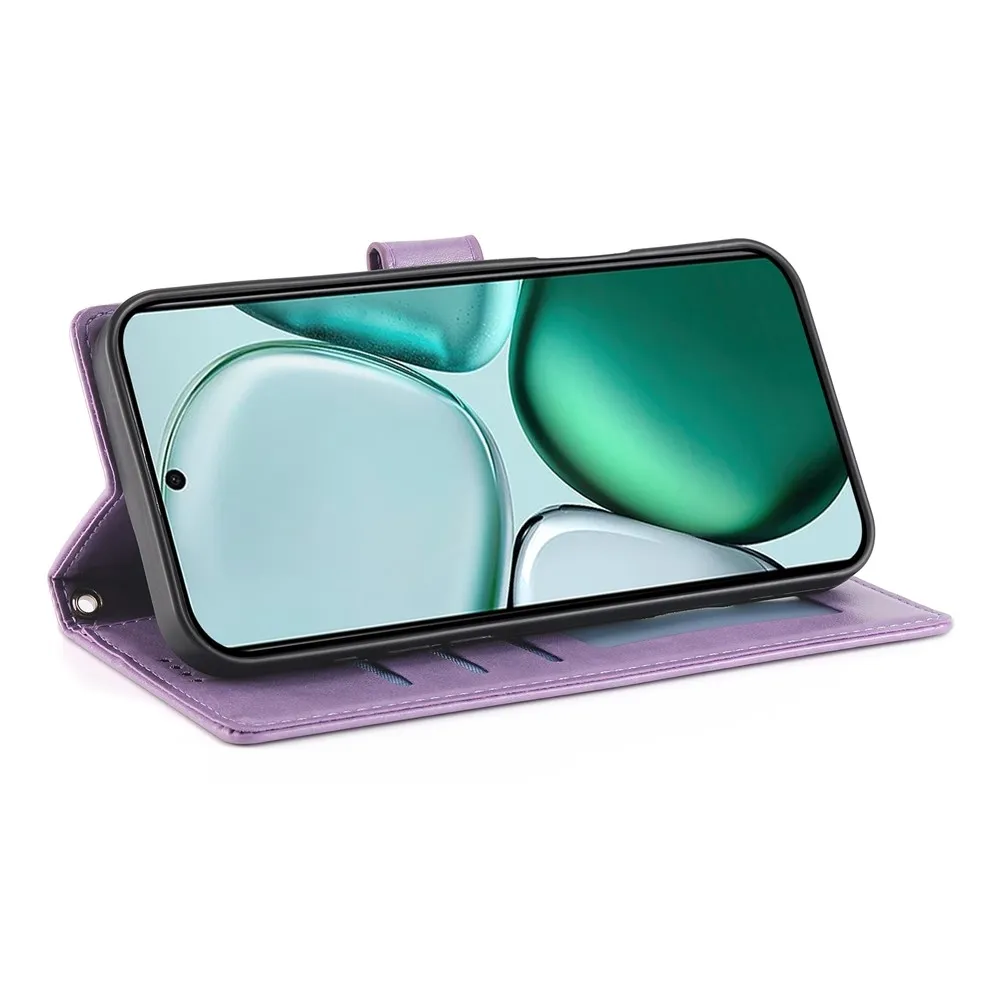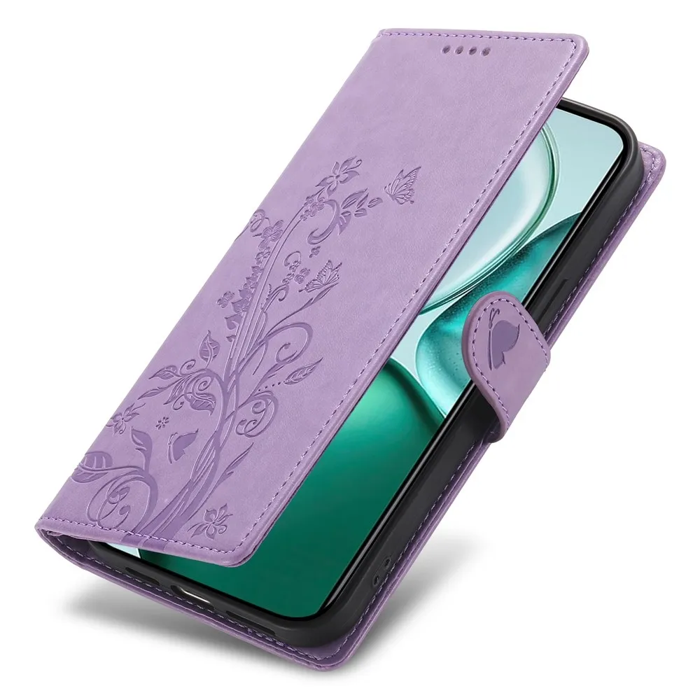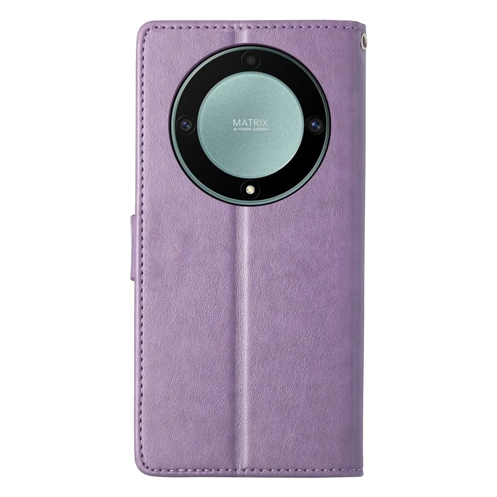 Virágok könyvtáska Honor Magic 8 Lite 5G-hez - világos lila