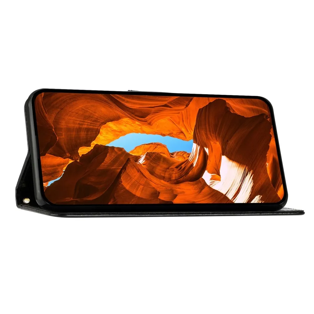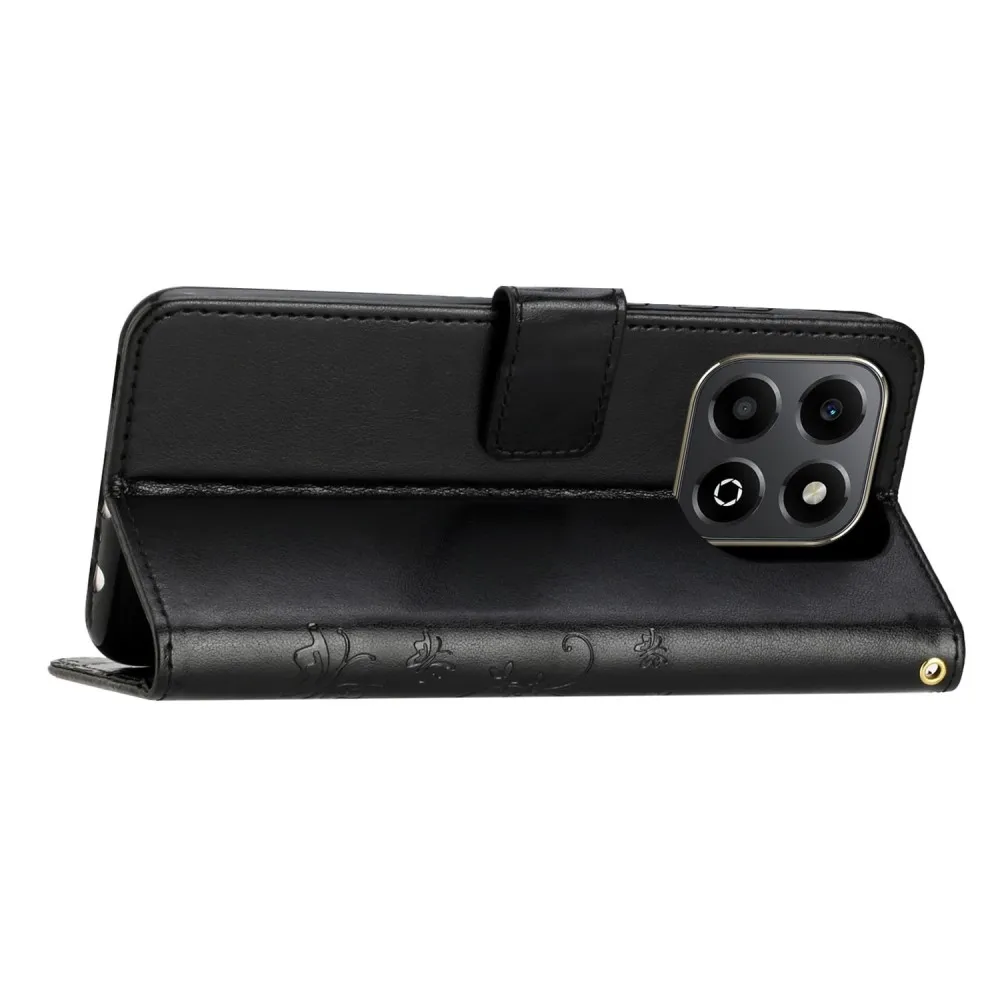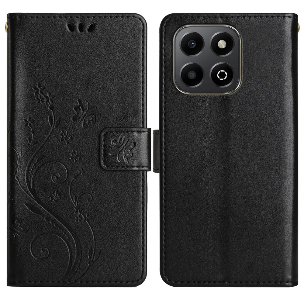 Fekete pénztárca tok Virágok a Honor X6b számára