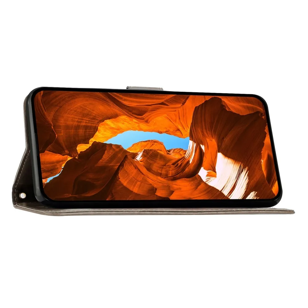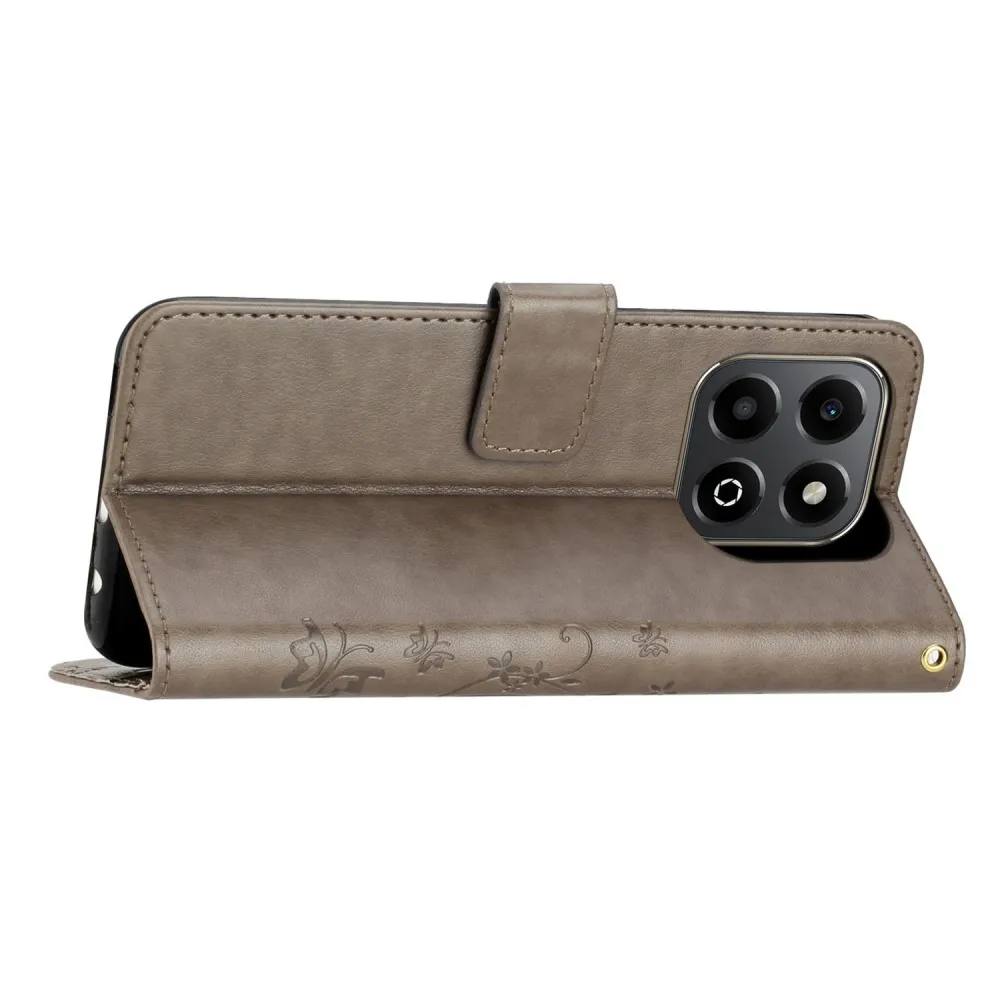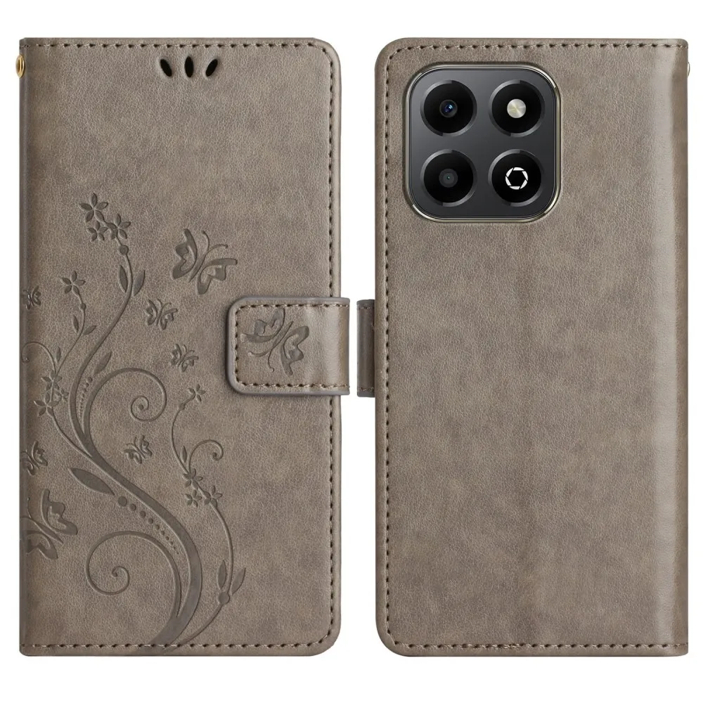 Szürke pénztárca tok Virágok a Honor X6b számára