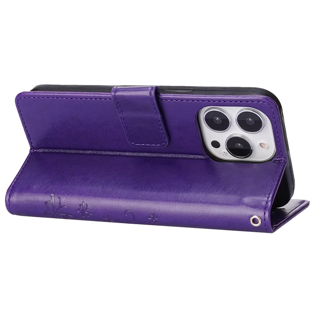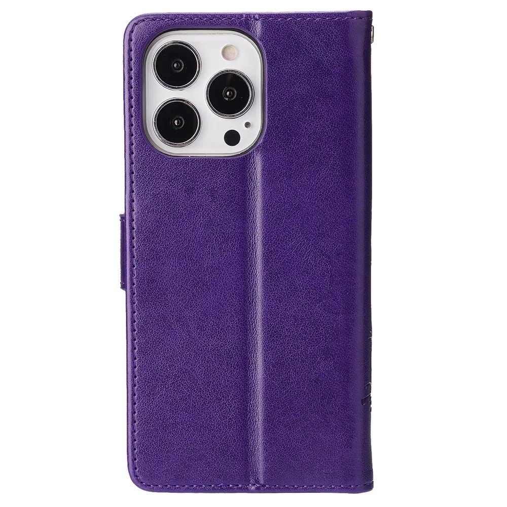 Virágok könyvtáska iPhone 15 Pro készülékhez - sötétlila
