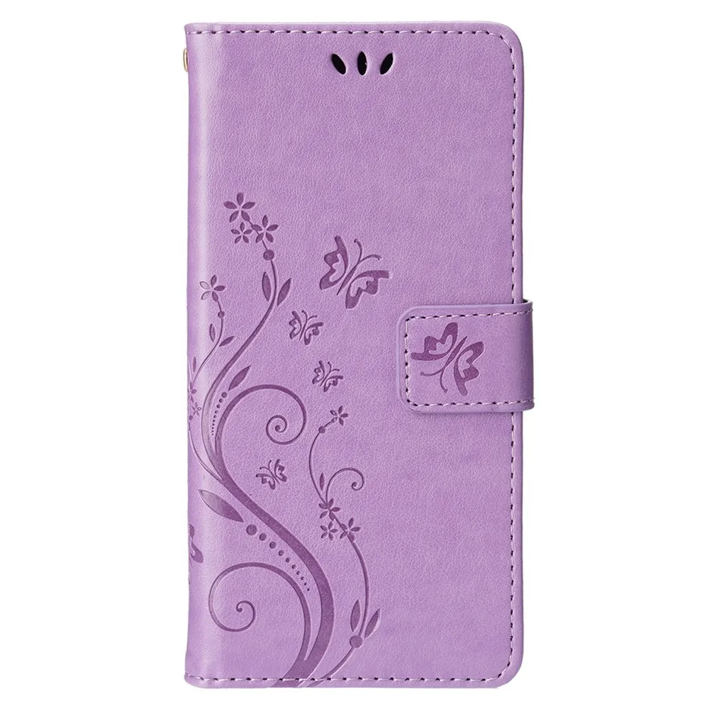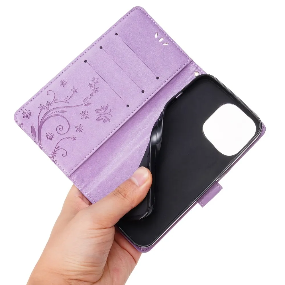 Világos lila Virágok pénztárca tok iPhone 15 Pro készülékhez