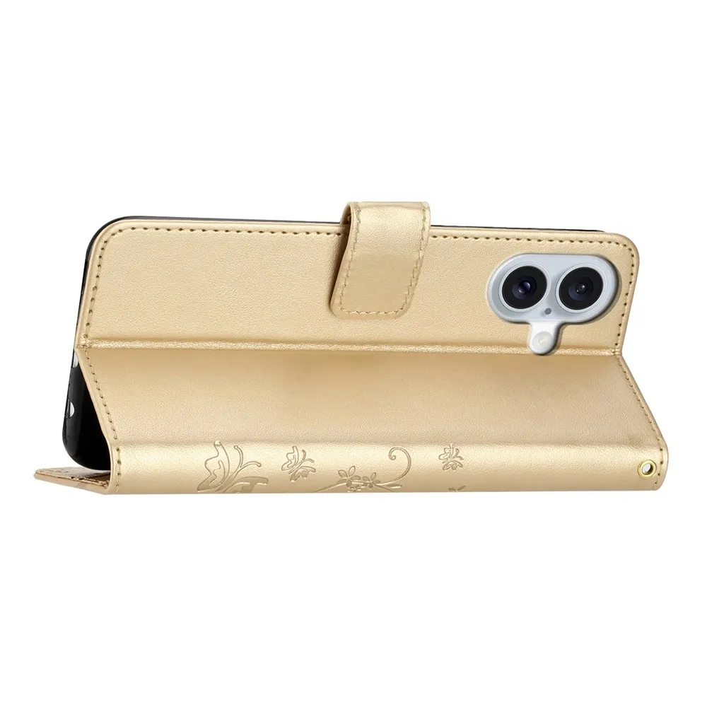 Virágok könyvtáska iPhone 17 készülékhez - arany