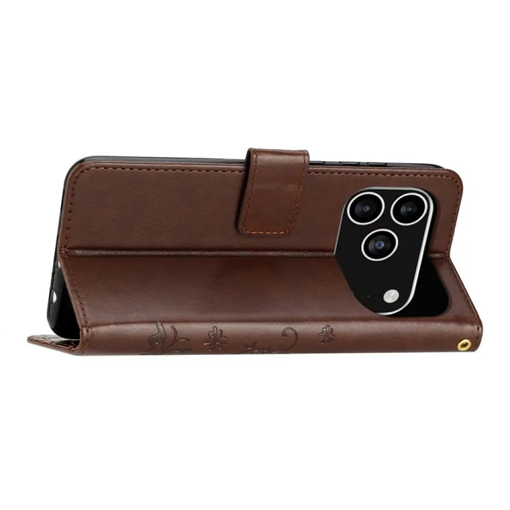 Barna pénztárca tok Virágok iPhone 17 Pro-hoz