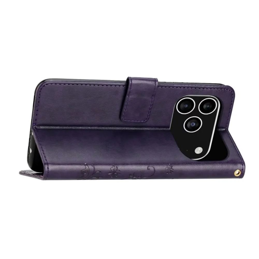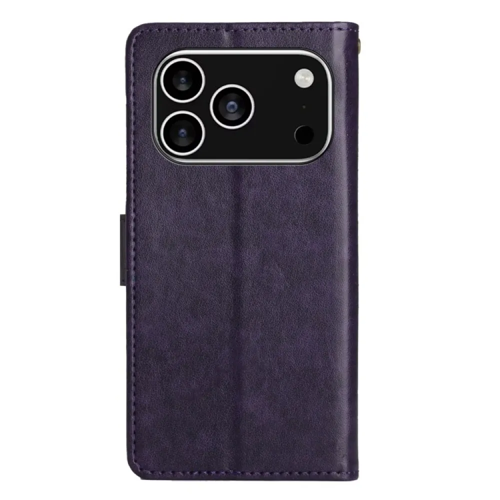 Virágok könyvtáska iPhone 17 Pro készülékhez - sötétlila