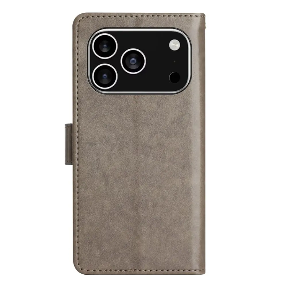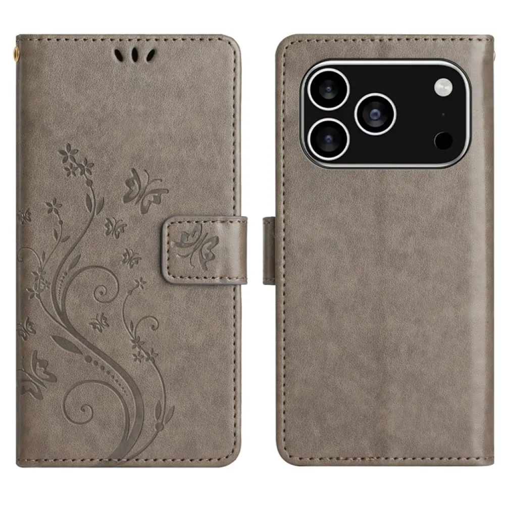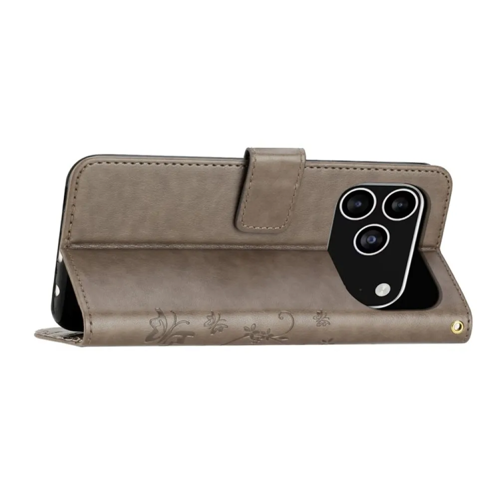 Szürke pénztárca tok Virágok iPhone 17 Pro-hoz