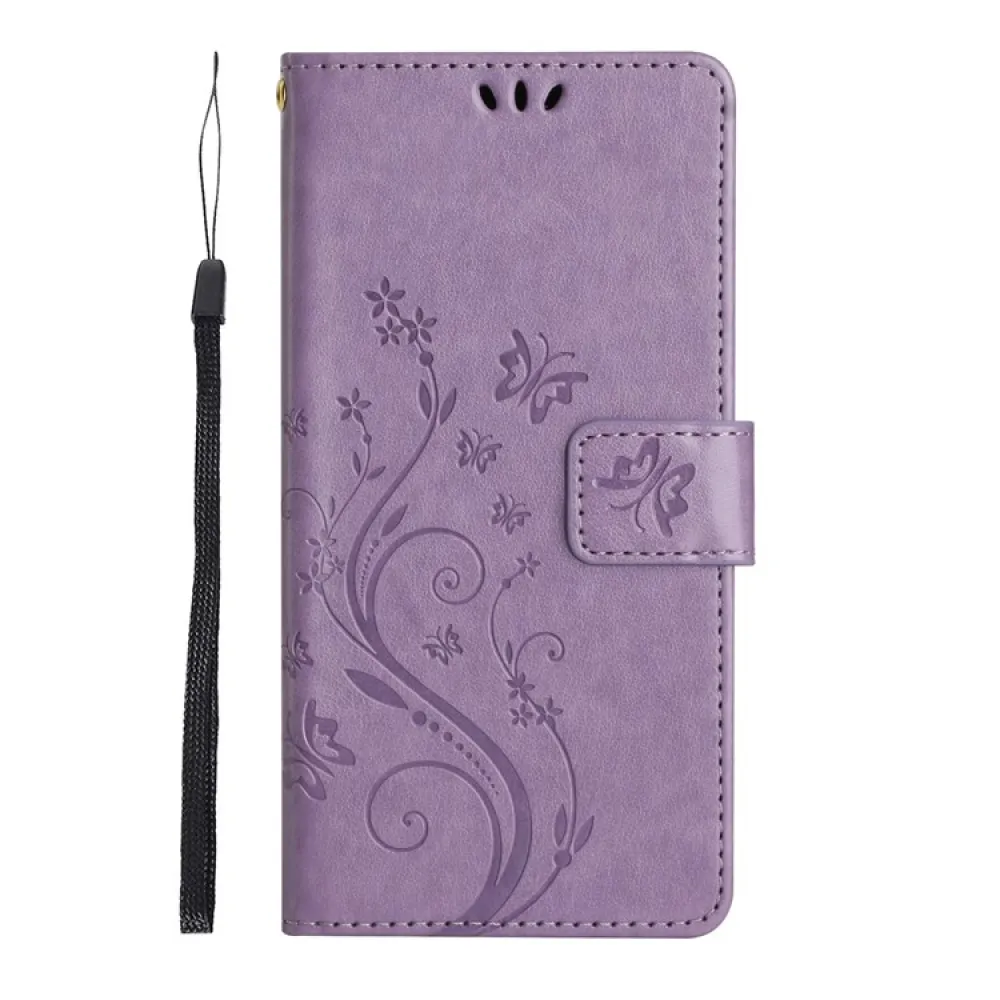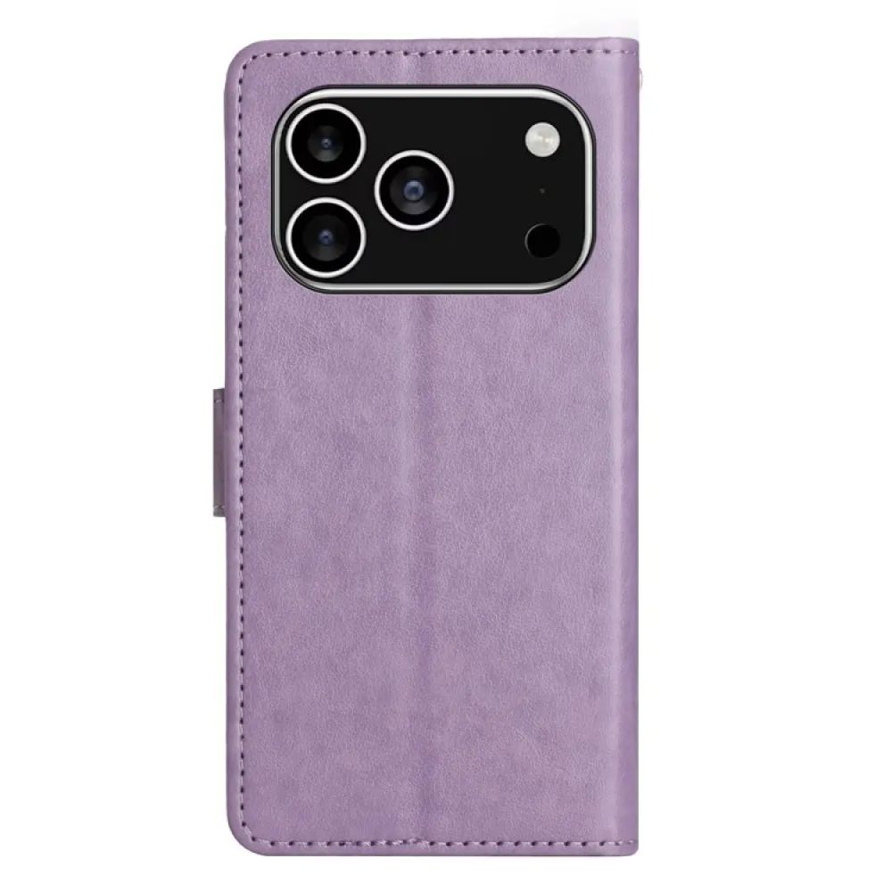 Világos lila Virágok pénztárca tok iPhone 17 Pro-hoz