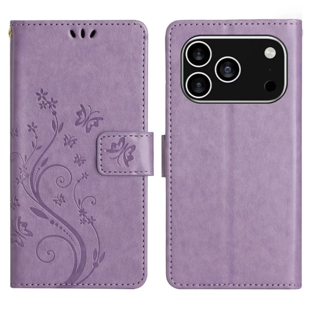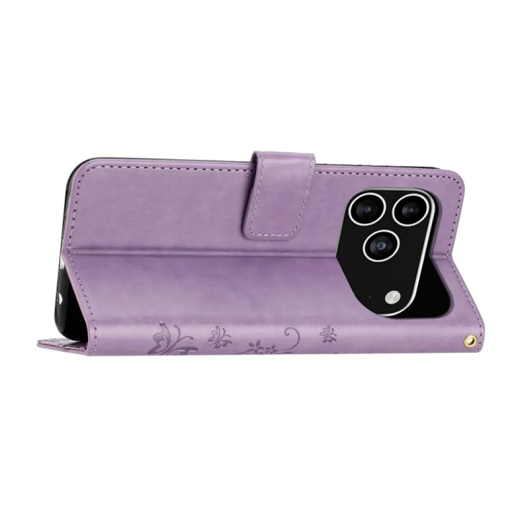 Virágok könyvtáska iPhone 17 Pro készülékhez - világos lila