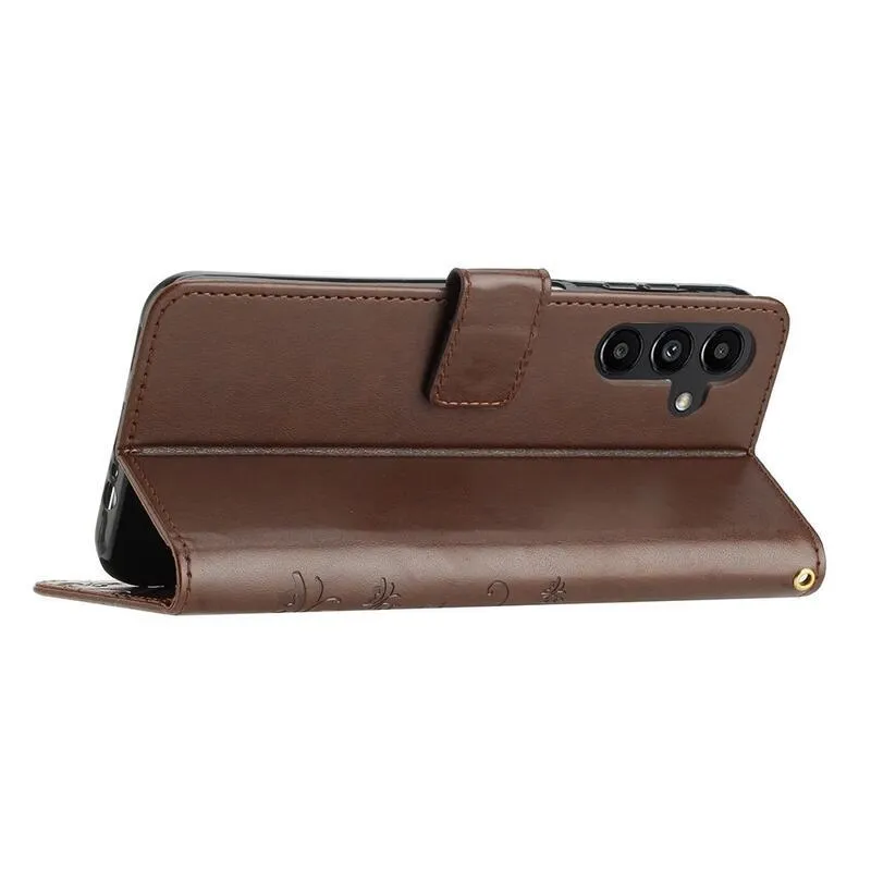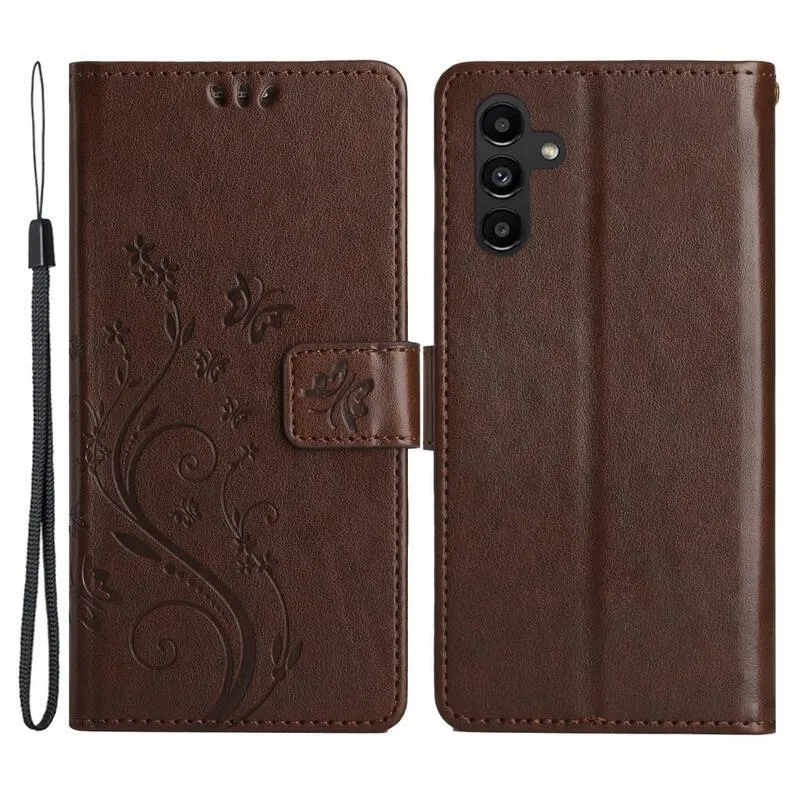 Virágok pénztárca tok Samsung Galaxy A54 5G-hez - barna