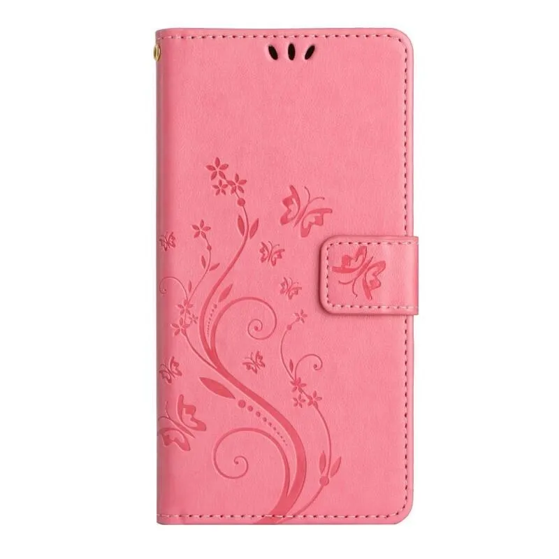 Virágok pénztárca tok Samsung Galaxy A54 5G-hez - rózsaszín