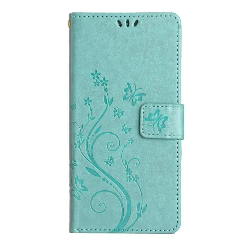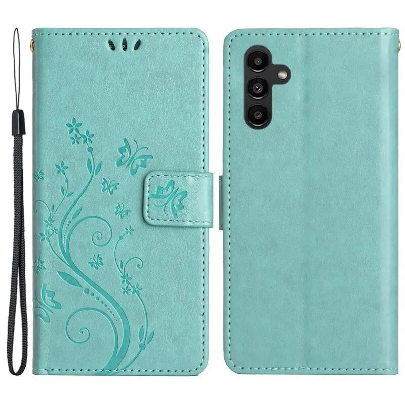 Virágok pénztárca tok Samsung Galaxy A54 5G-hez - teáskék