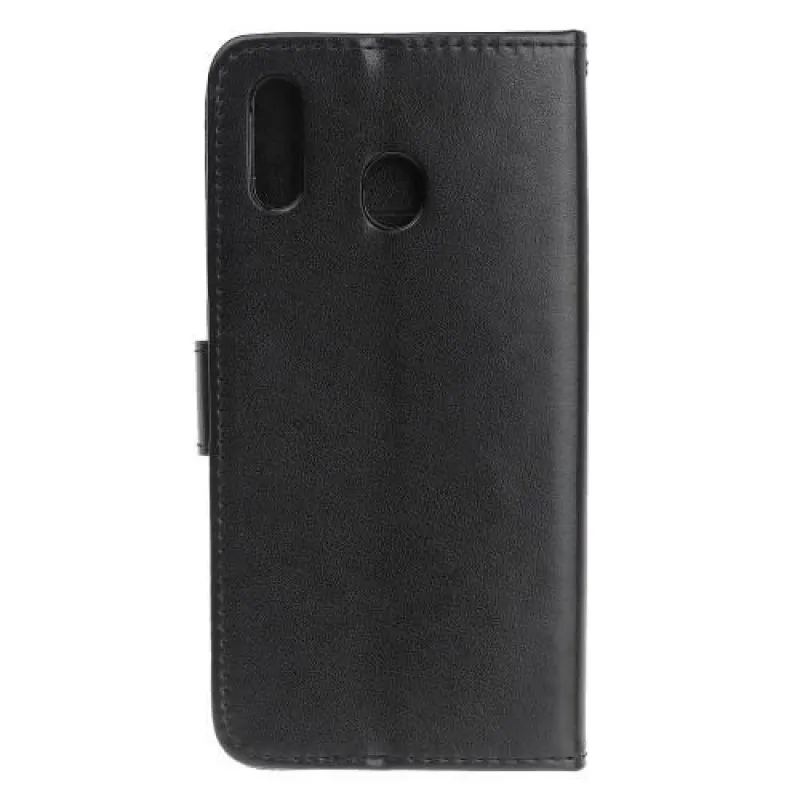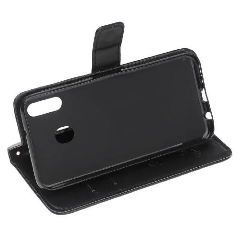 Virág fekete pénztárca tok Samsung Galaxy A20e számára