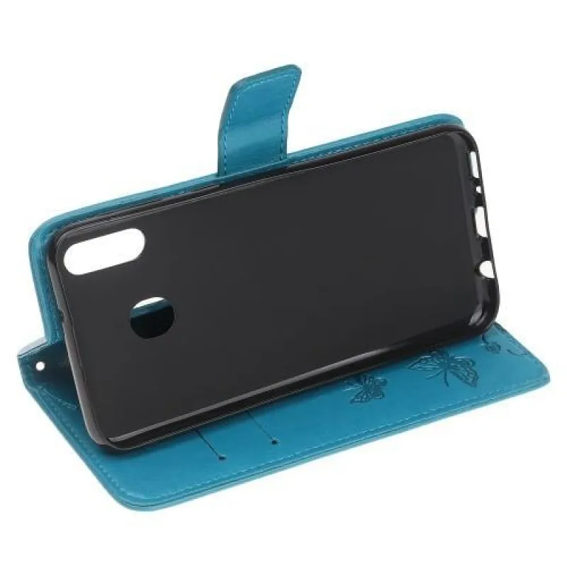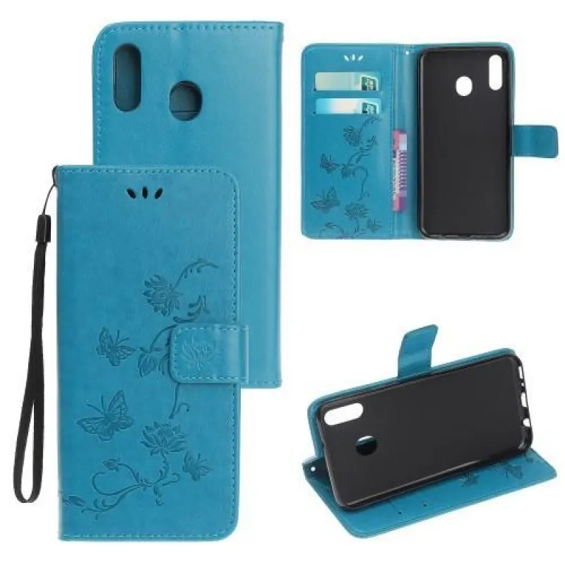 Virág kék pénztárca tok Samsung Galaxy A20e számára