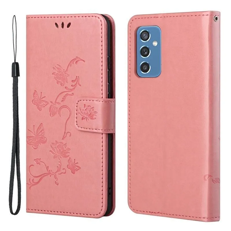 Virág rózsaszín pénztárca tok Samsung Galaxy M52 5G számára