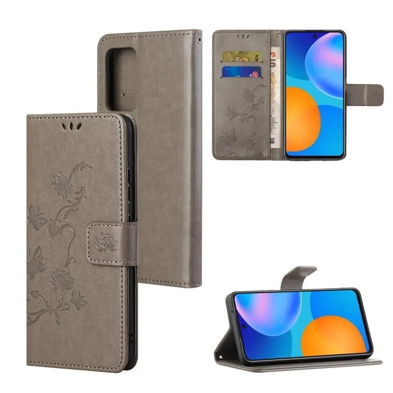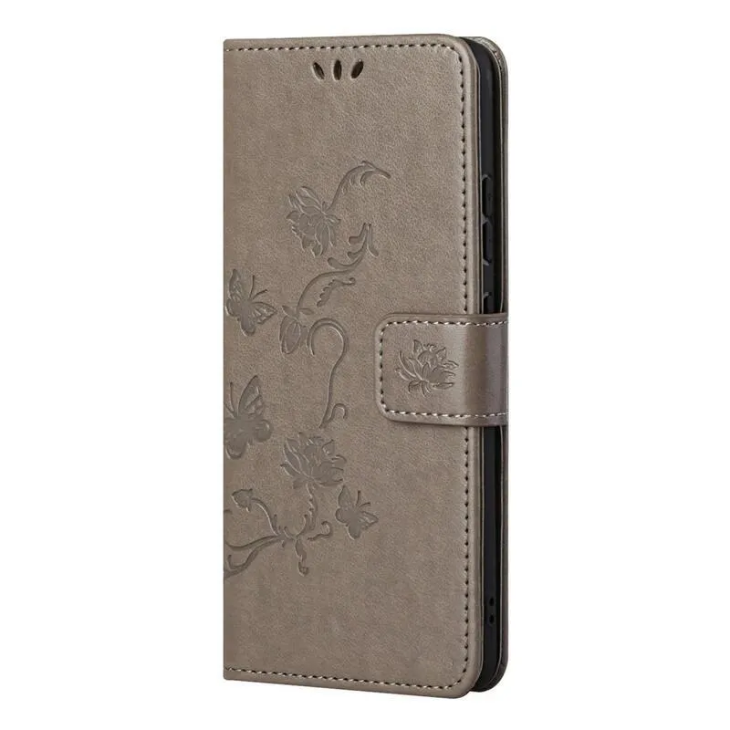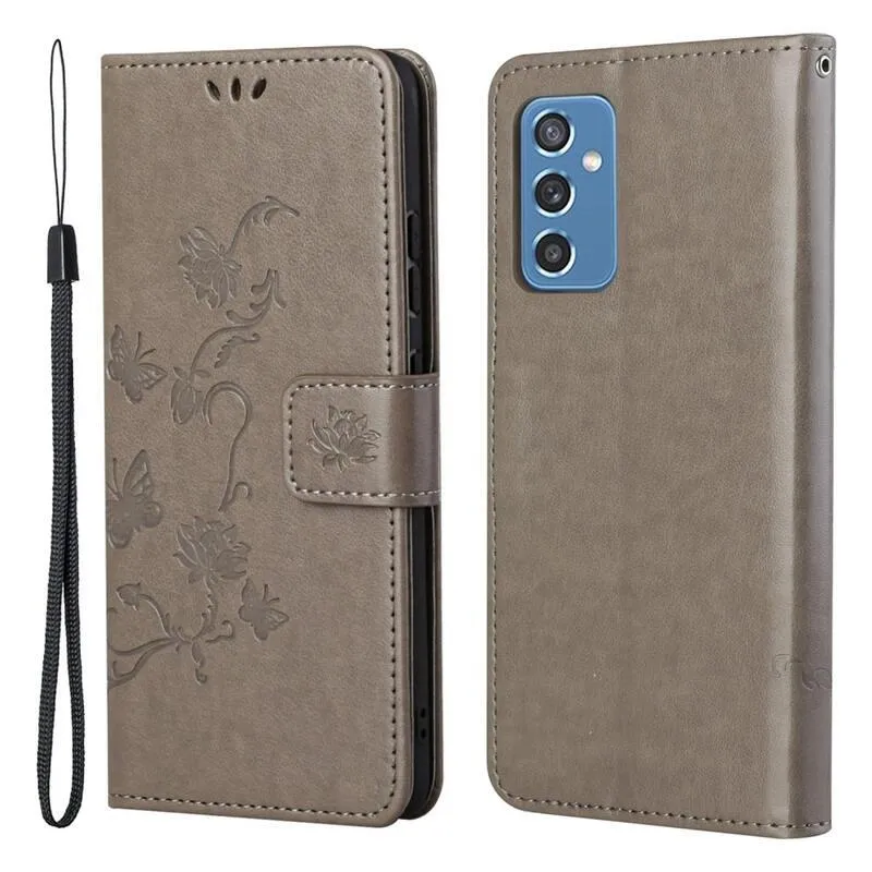 Virágok PU bőr pénztárca tok Samsung Galaxy M52 5G-hez - szürke