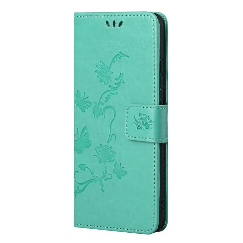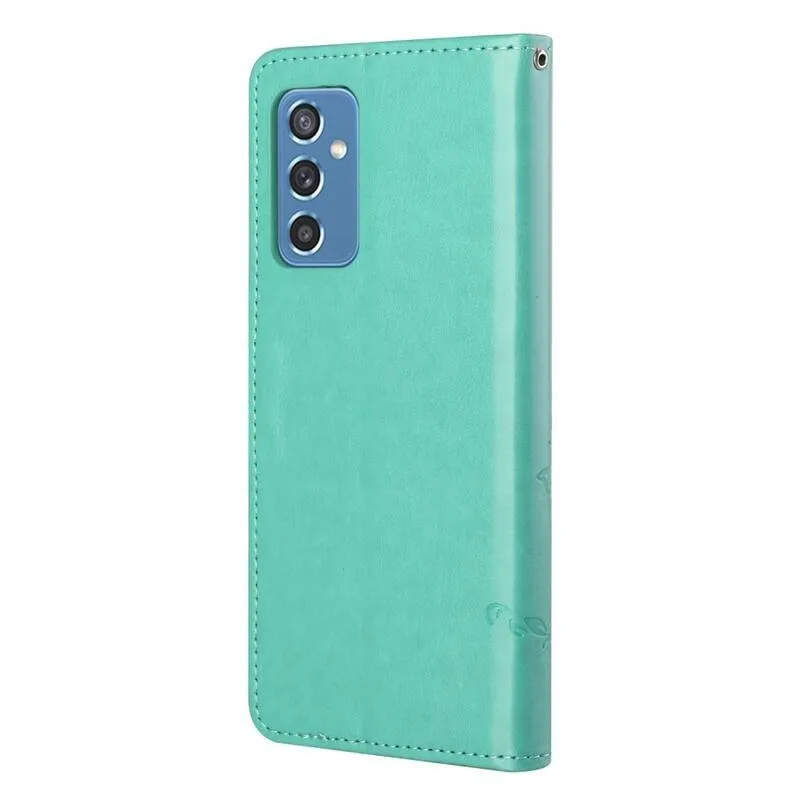 Virágok PU bőr pénztárca tok Samsung Galaxy M52 5G-hez - zöld