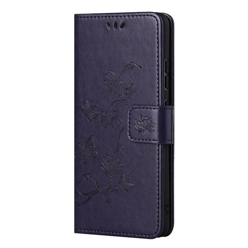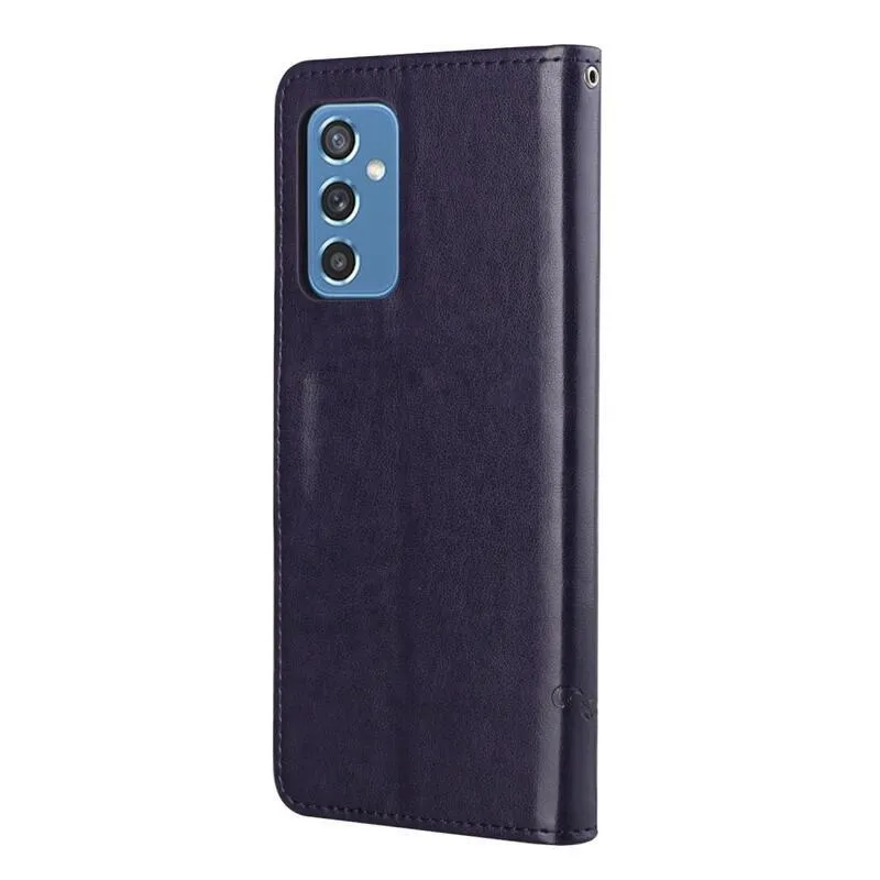 Virágok PU bőr pénztárca tok Samsung Galaxy M52 5G - sötét lila