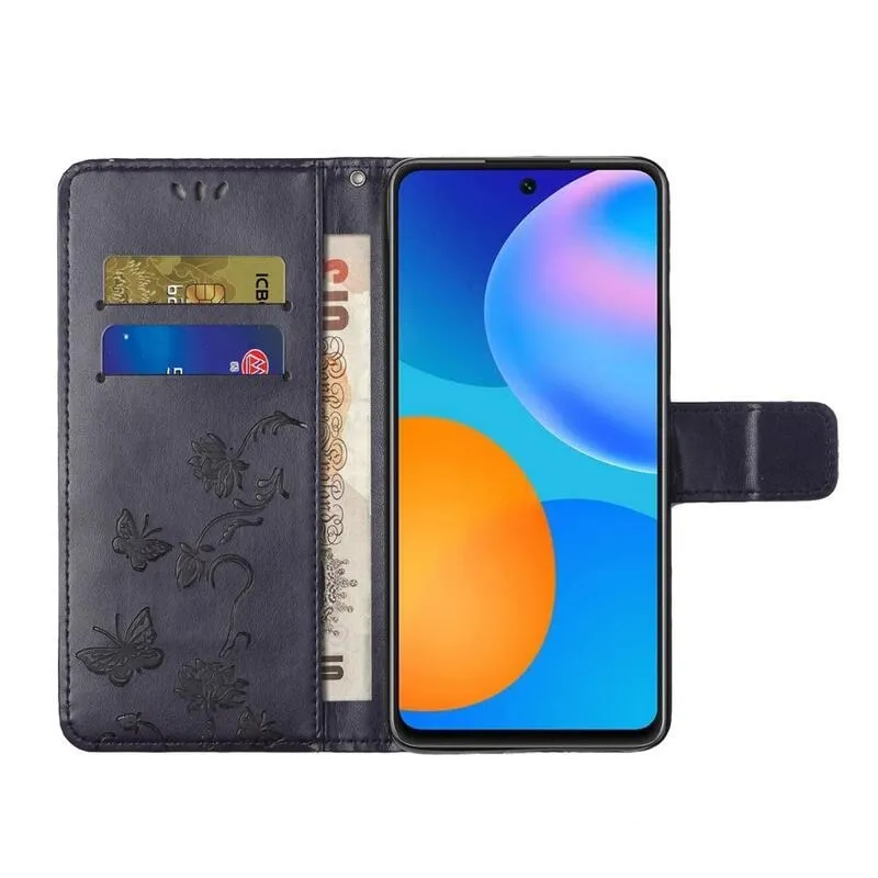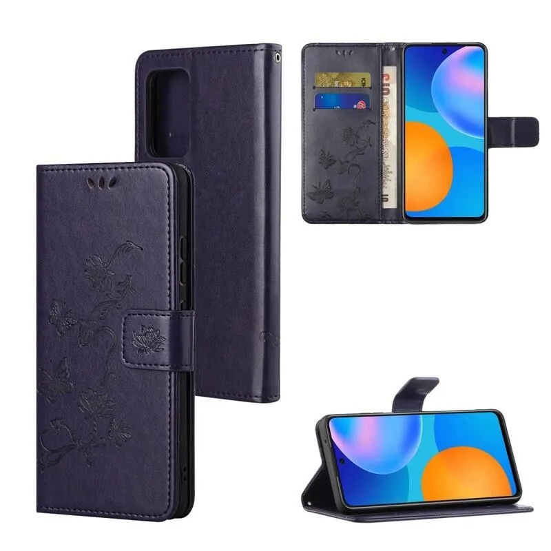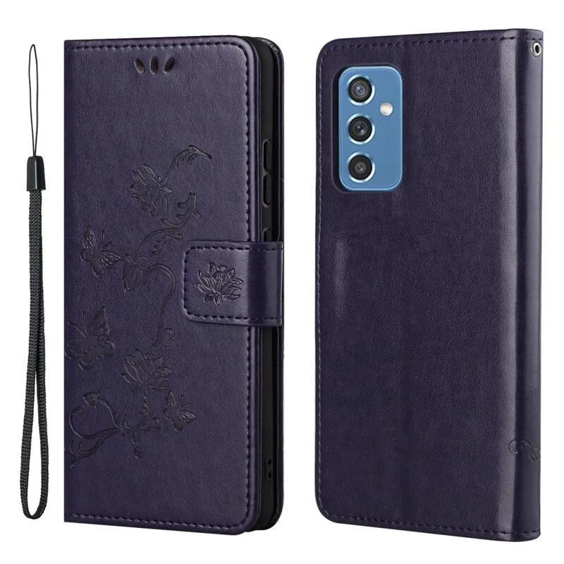 Virág sötét lila pénztárca tok Samsung Galaxy M52 5G számára