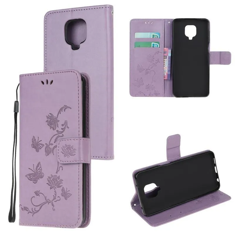 Virág lila pénztárca tok Xiaomi Redmi Note 9 Pro/Note 9S számára