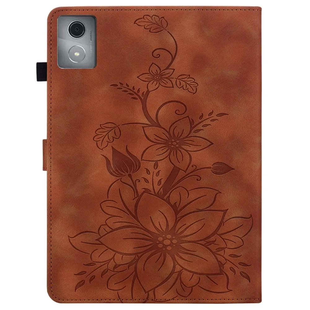 Virágok záró tok Lenovo Tab K11 Plus-hoz - barna