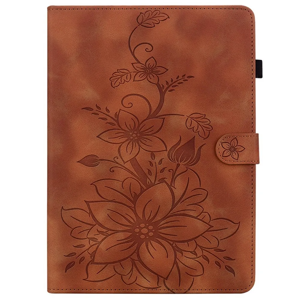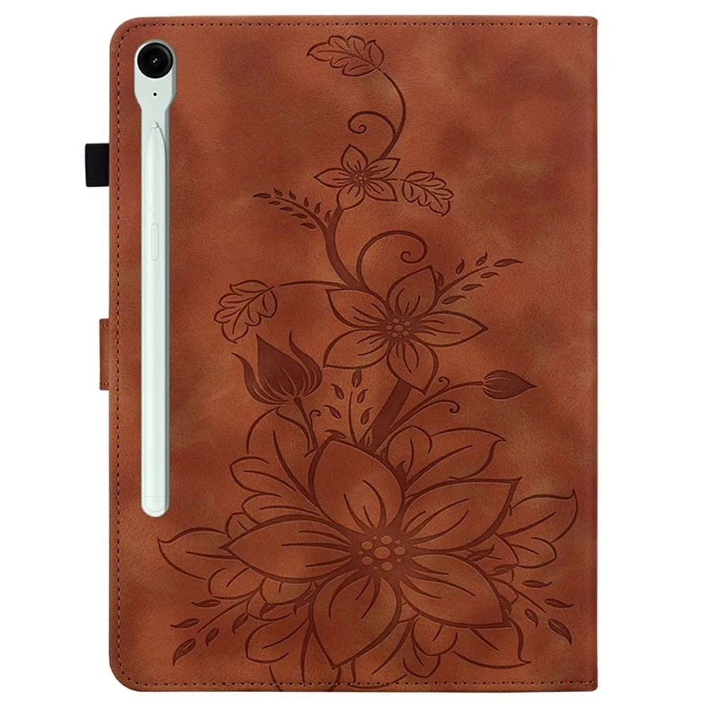 Virágok záródó tok Samsung Galaxy Tab S11 készülékhez - barna