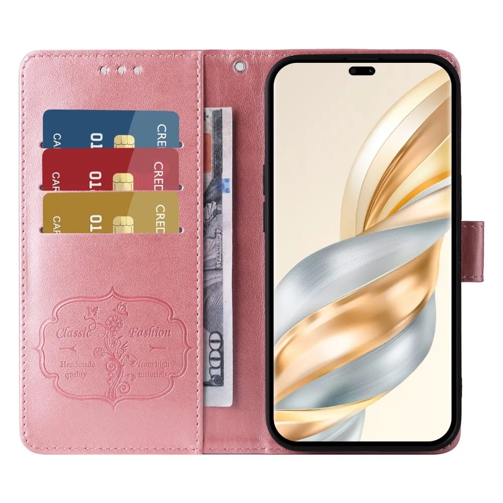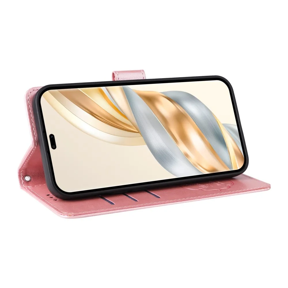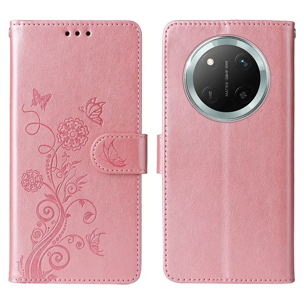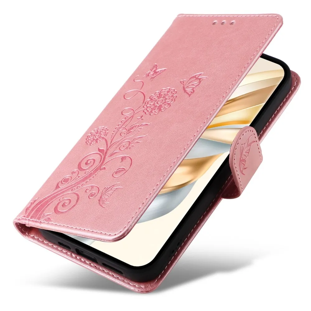 Rózsaszín pénztárca tok Virágos a Honor Magic 7 Lite 5G számára